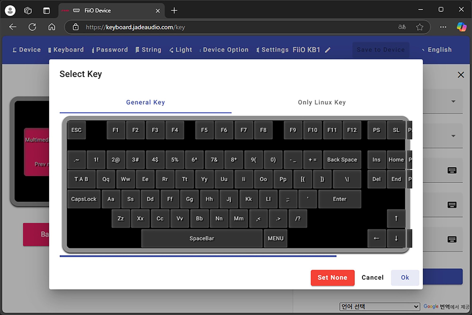 설정 사이트 바로가기 : https://keyboard.jadeaudio.com/device