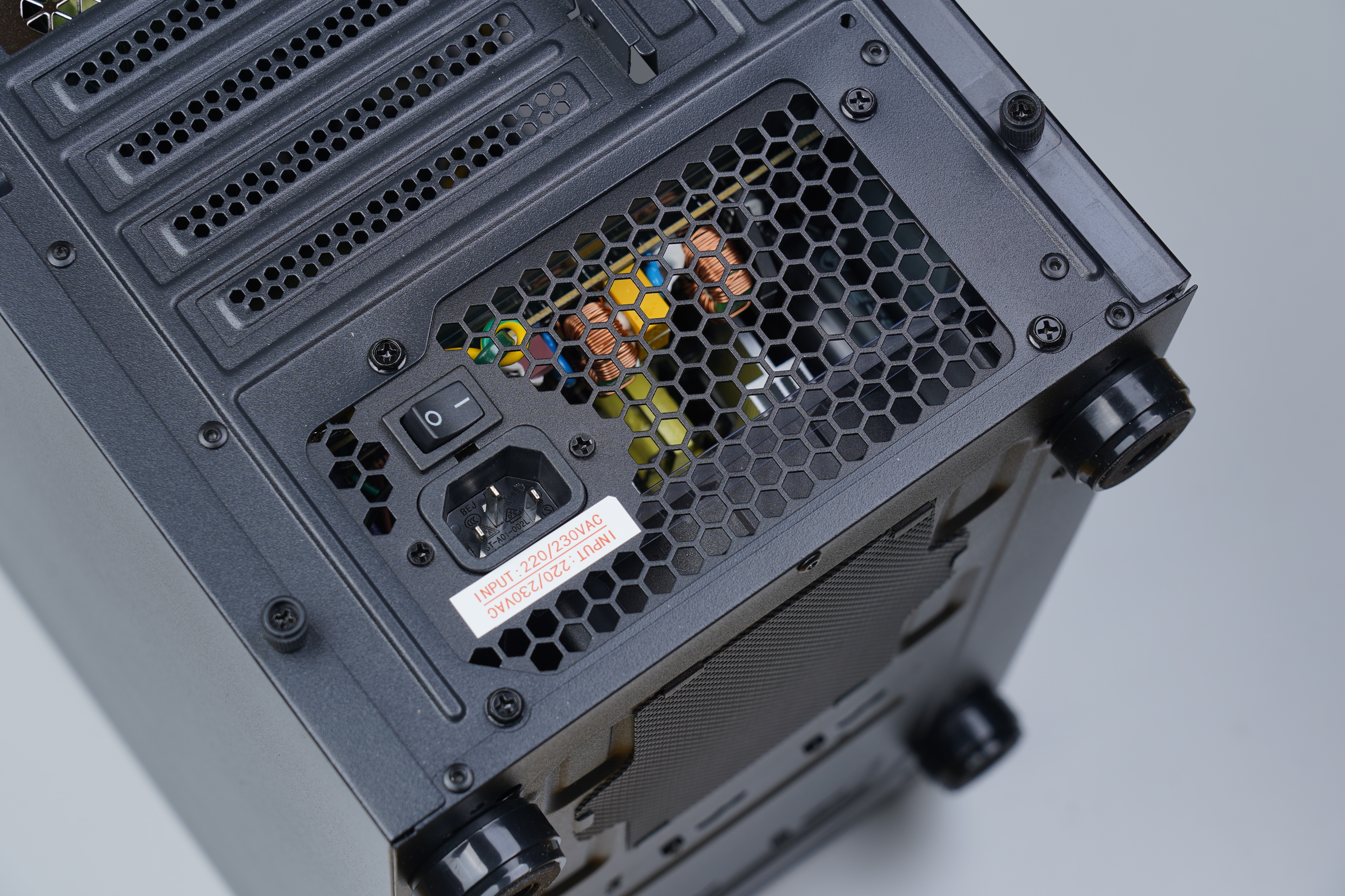 그래픽카드에는 3개의 디스플레이 포트(DP)와 1개의 HDMI 포트가 배치되어 있습니다. 여러 대의 모니터를 연결해서 사용하려는 분들에게 적합한 특징이라고 할 수 있습니다. 그리고 가장 아래쪽에는 잘만 EcoMax 600W 파워 서플라이가 배치되어 있습니다. 스펙을 생각해 보면 정격출력이 크게 부족해 보이지는 않았습니다.