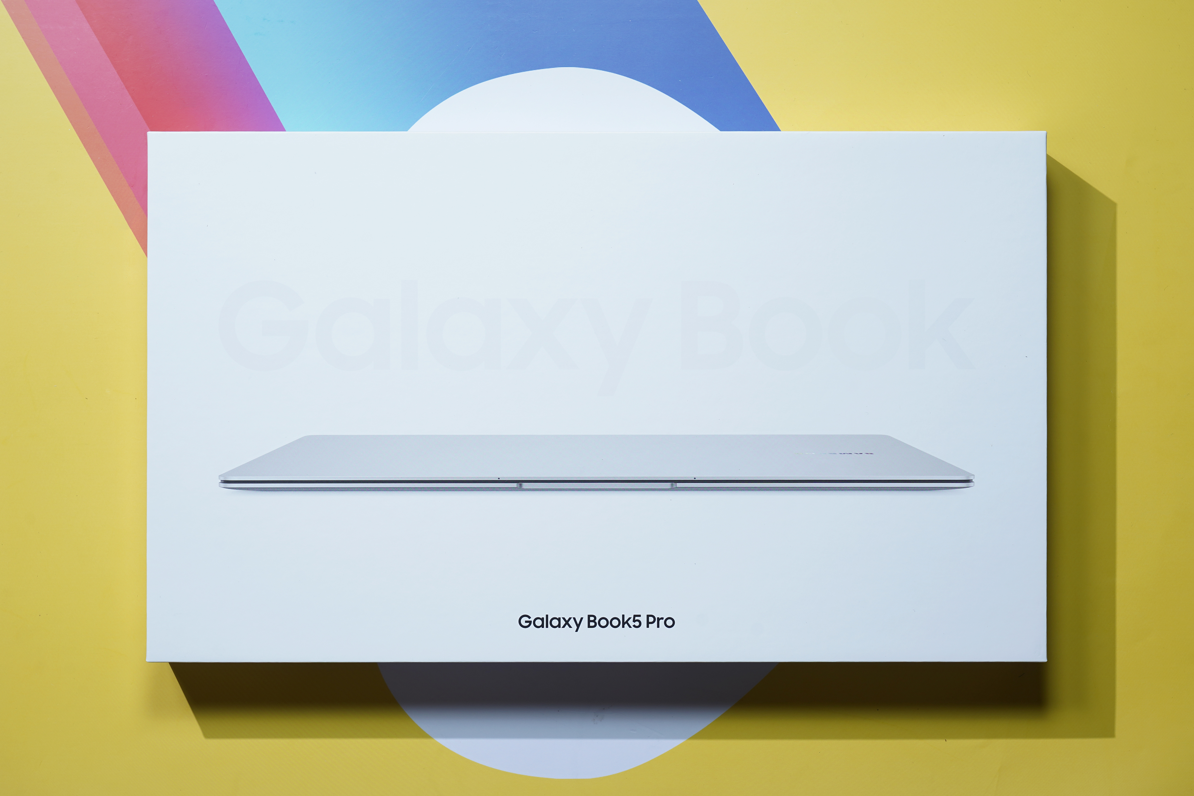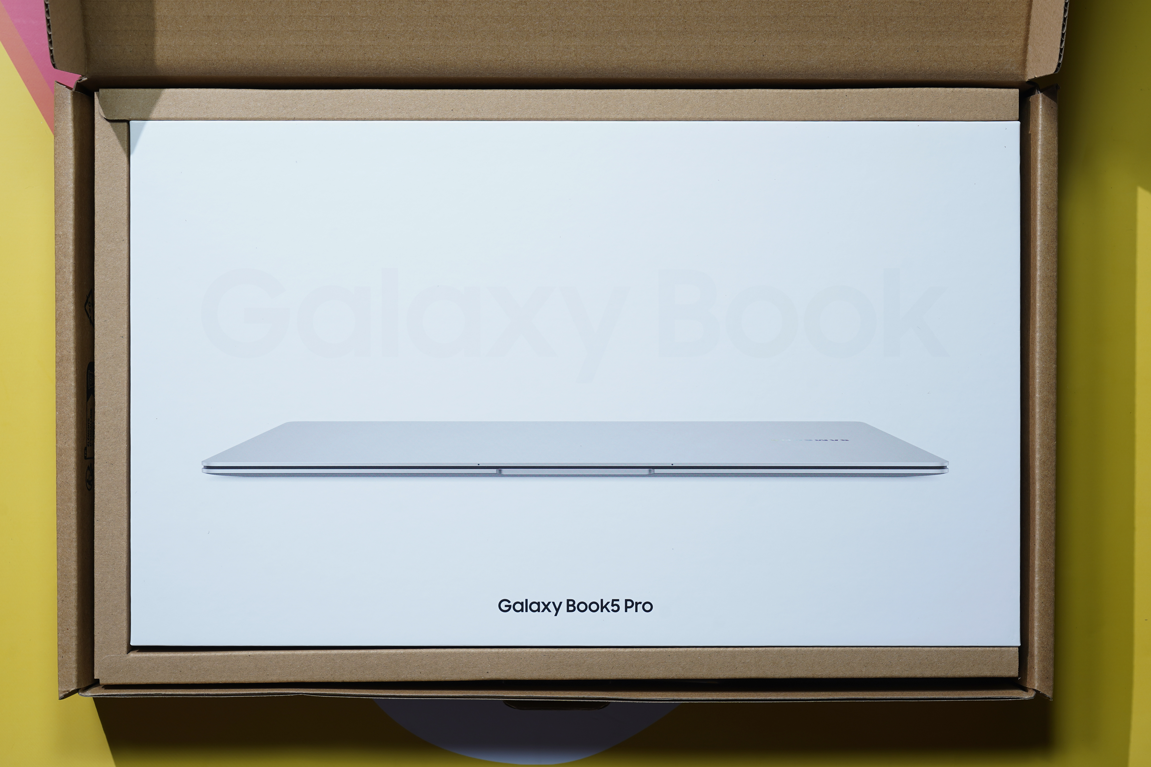 삼성 갤럭시북5 프로 14인치 노트북의 실제 박스를 살펴보면 심플한 스타일의 화이트 컬러로 제작되었고 전면에는 슬림한 디자인을 상징하는 일러스트가 인쇄되어 있습니다. 그리고 Galaxy Book5 Pro라는 문구도 아래쪽에 배치되어 있습니다.