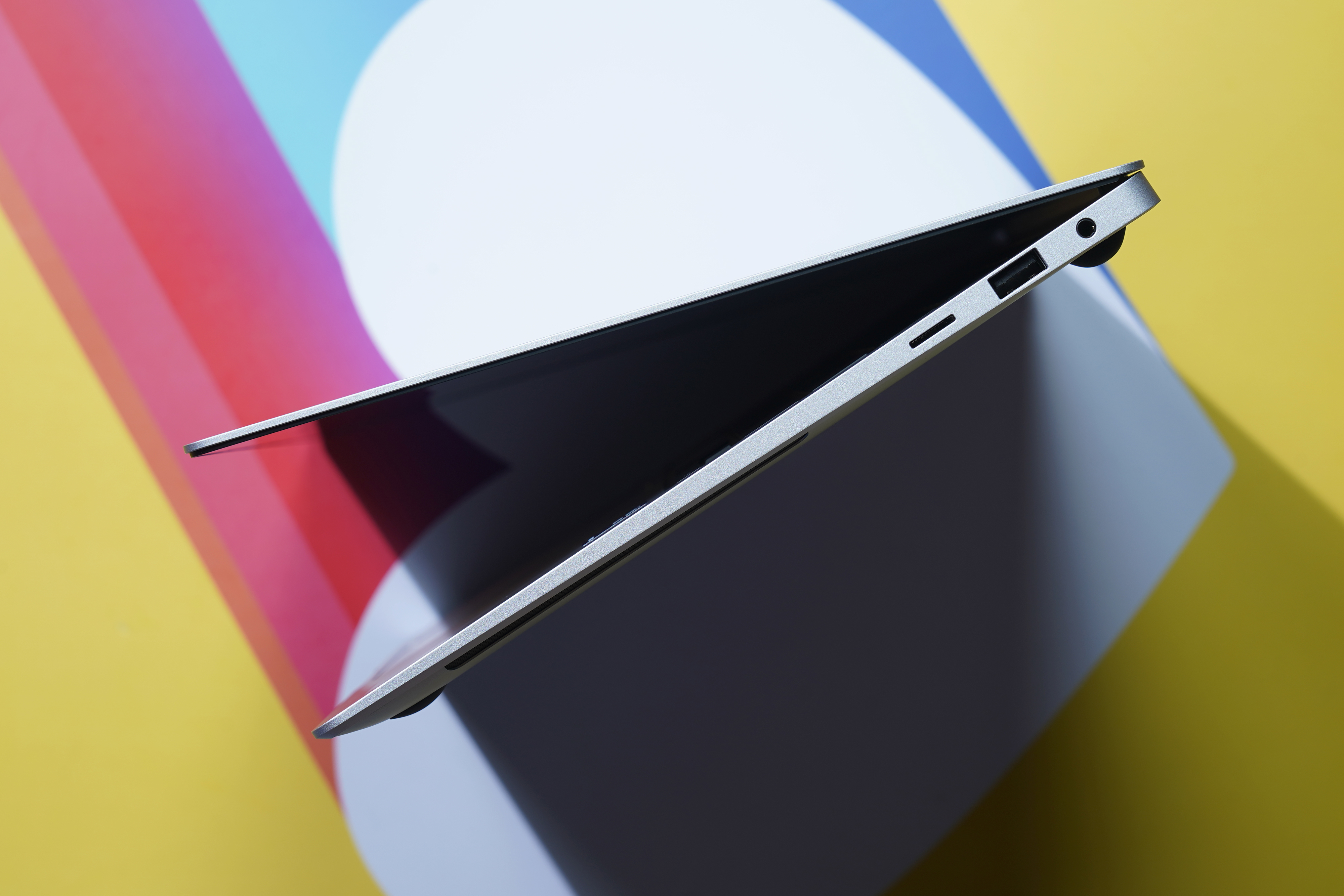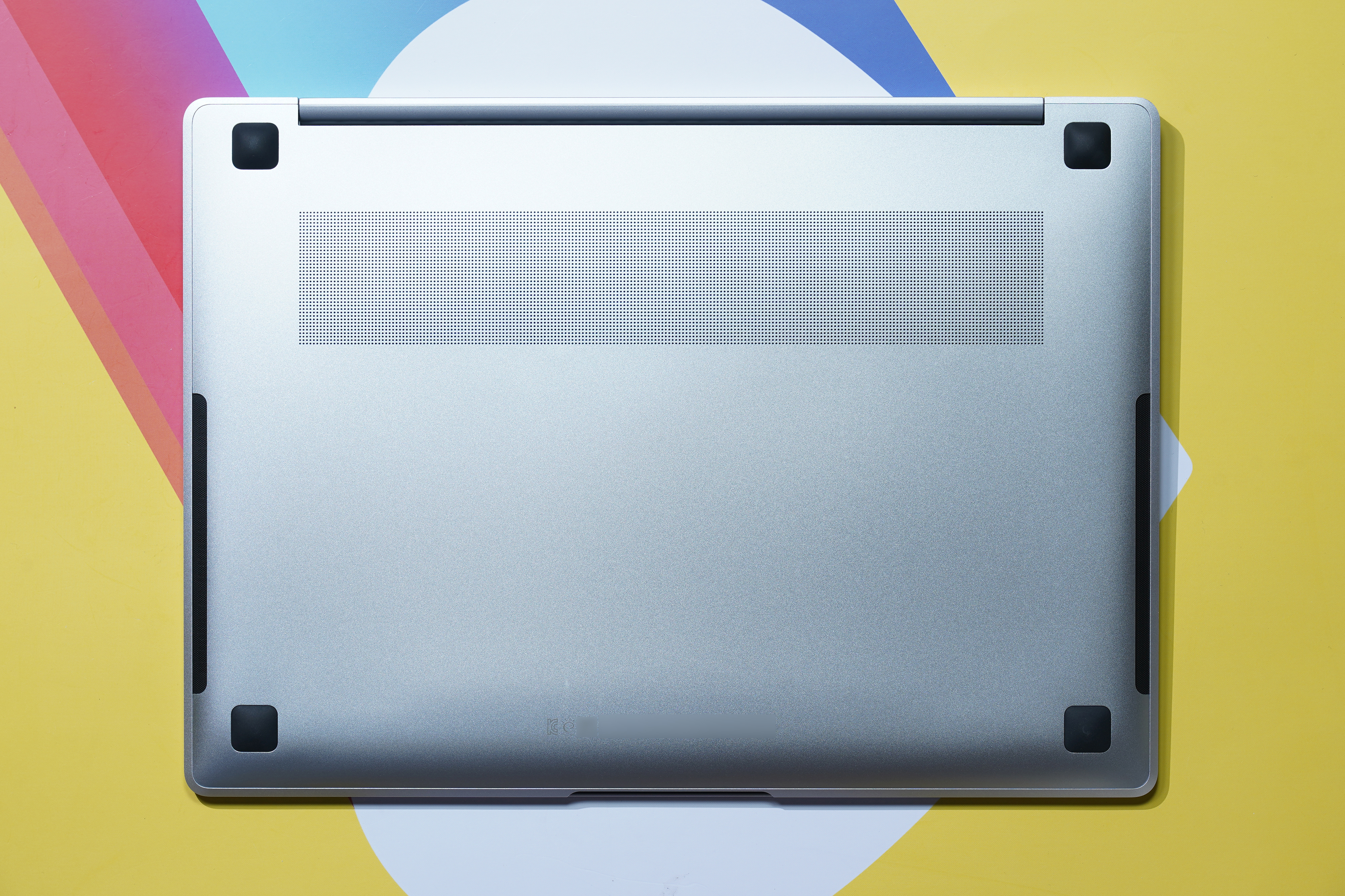 바닥을 살펴보면 모서리 부분에 고무 지지대가 배치되어 있어서 책상 위에서 잘 미끄러지지 않는 편입니다. 그리고 위쪽에는 발열 해소를 위한 통풍구가 준비되어 있습니다. 그 외에도 양옆에는 Dolby Atmos로 튜닝된 쿼드 스피커가 탑재되었습니다.