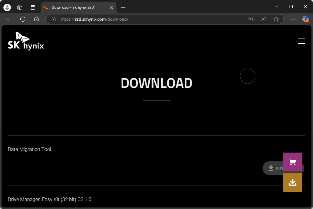 노트북의 SSD 마이그레이션을 하기 위해서는 우선 SSD 제조사에서 제공하는 소프트웨어가 필요합니다. SK하이닉스에서는 Macrium 소프트웨어의 Clone Tool이라는 제품이 제공됩니다. 프로그램을 다운로드 받고 SKHSSD.EXE라는 파일을 실행시키면 됩니다.