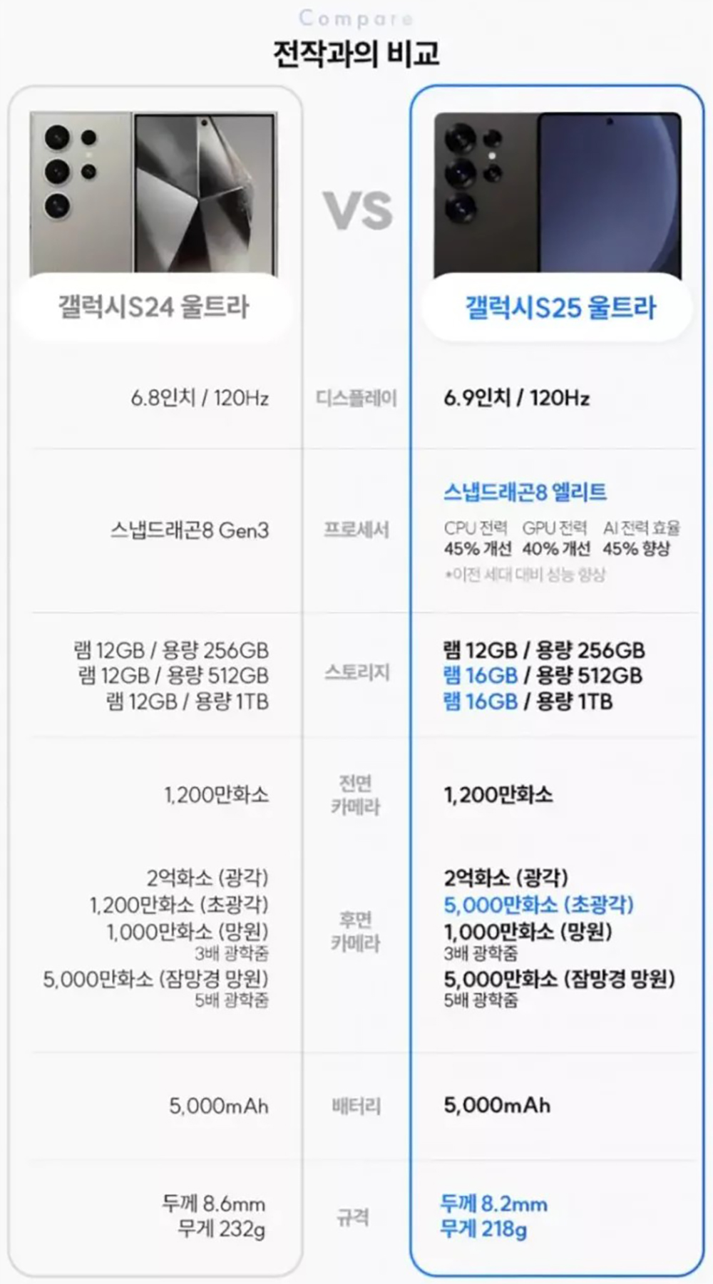 갤럭시 S24 울트라 – 갤럭시 S25 울트라