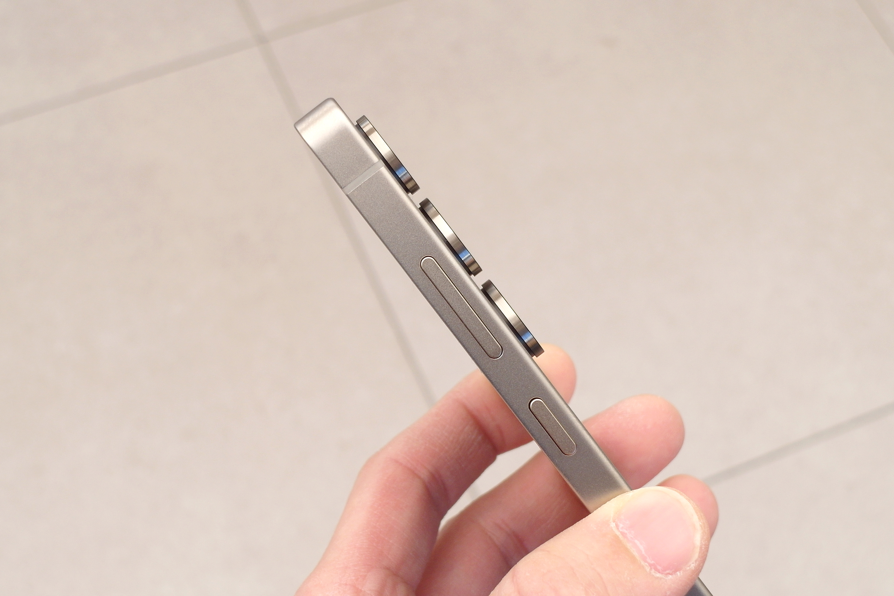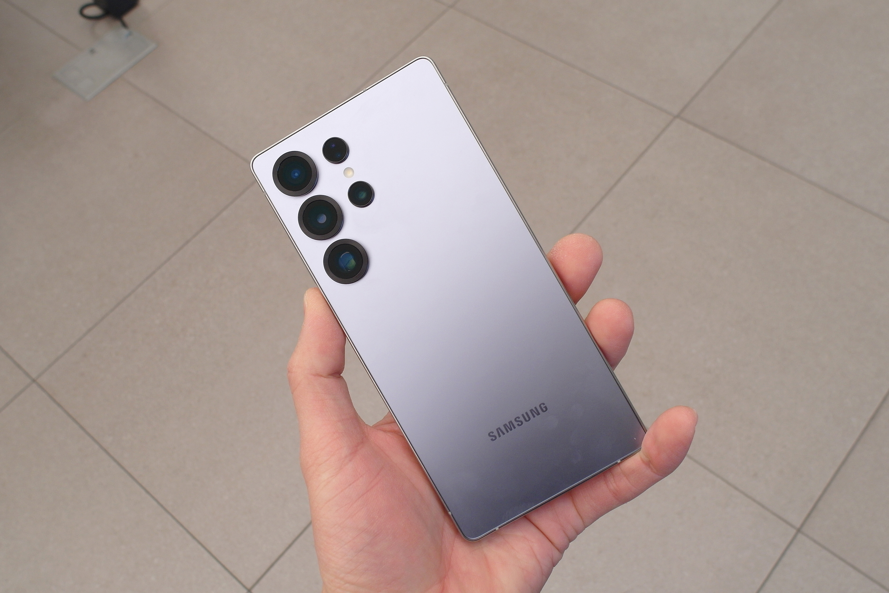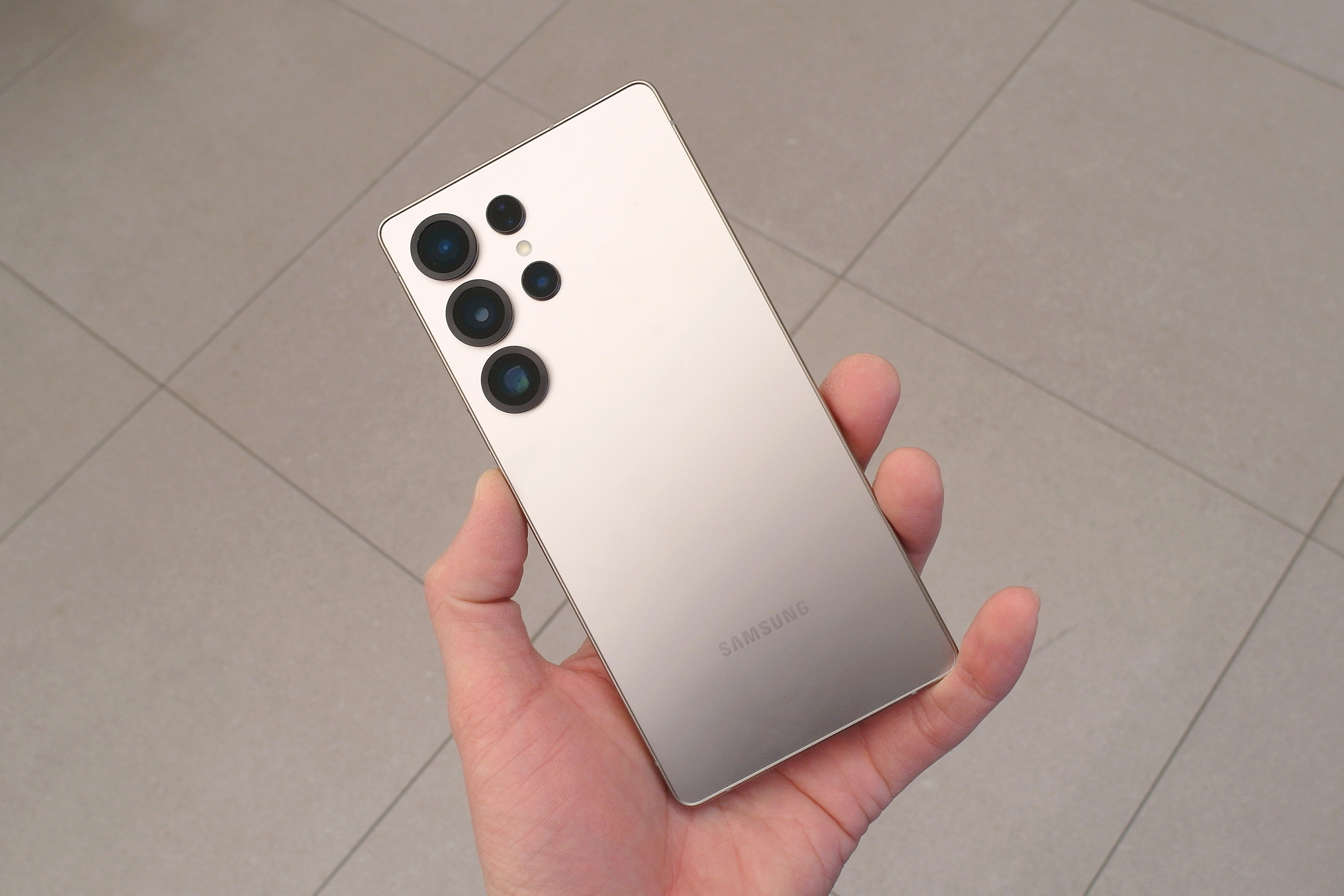 가장 먼저 살펴볼 제품은 티타늄 그레이였는데요. 그레이라는 이름이 붙어 있기는 하지만 S24 울트라 내추럴 색상처럼 약간 골드 컬러 같다는 인상을 받았습니다. 특히 톤이 다운되어 있어서 촌스럽지 않고 고급스럽다는 인상을 받았습니다.