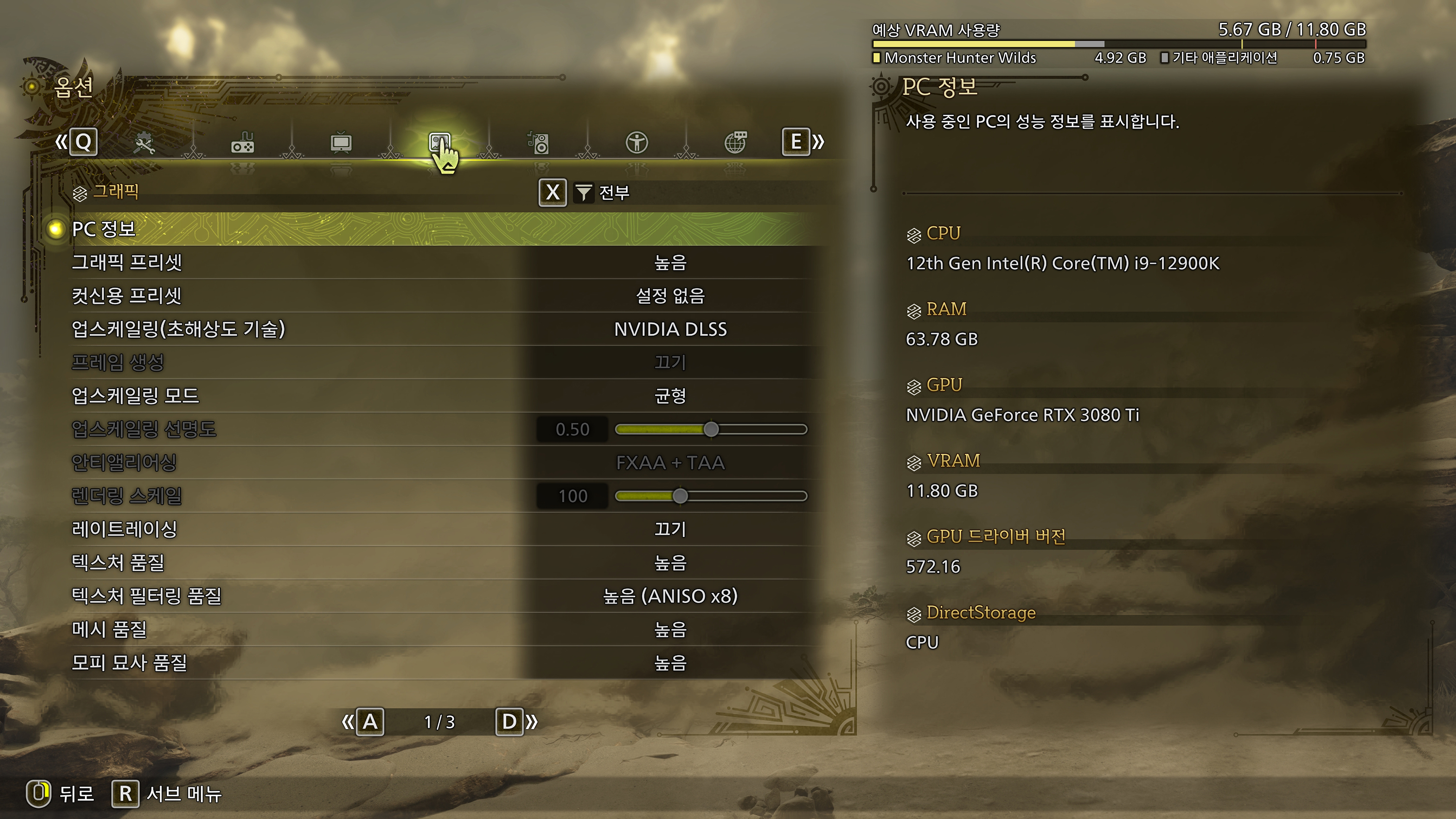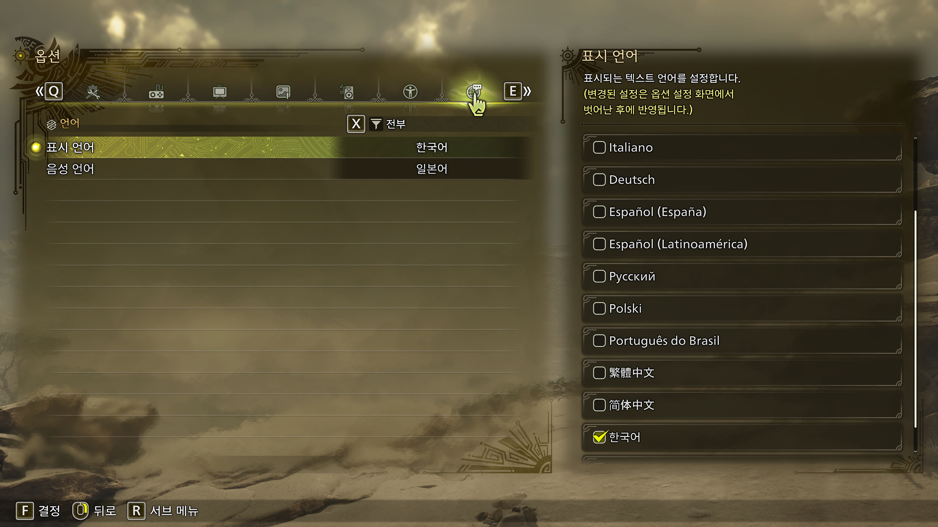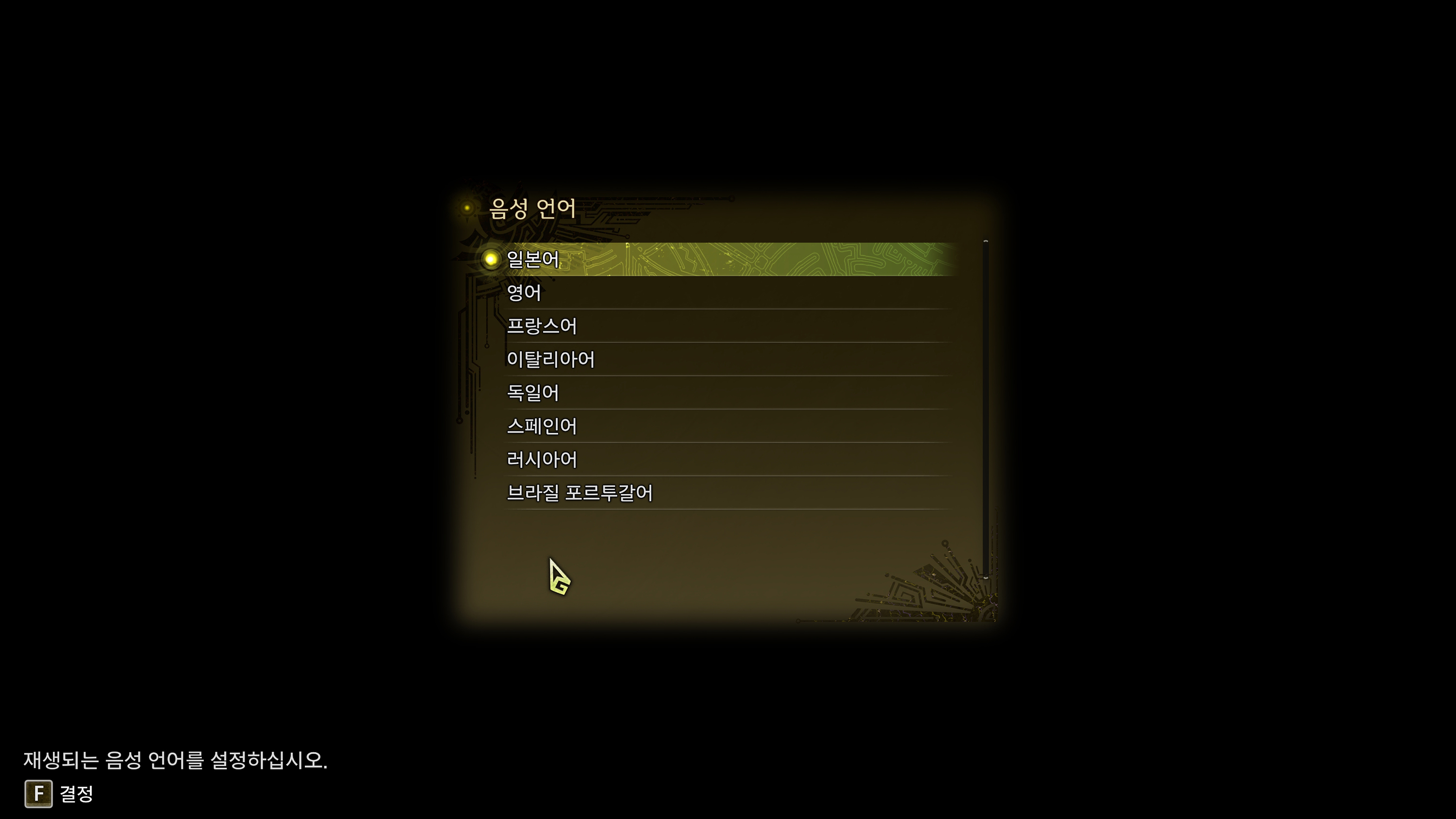 몬스터 헌터 와일즈 벤치마크 프로그램을 실행시키면 게임 파일 최적화와 셰이더 컴파일이 진행되는데요. 컴퓨터 사양에 따라서 상당한 시간이 소용될 수 있습니다. 그리고 표시 언어는 한국어가 준비되어 있고 음성 언어는 일본어나 영어 등을 선택할 수 있습니다. 더빙은 안 되어 있는 것으로 보입니다.