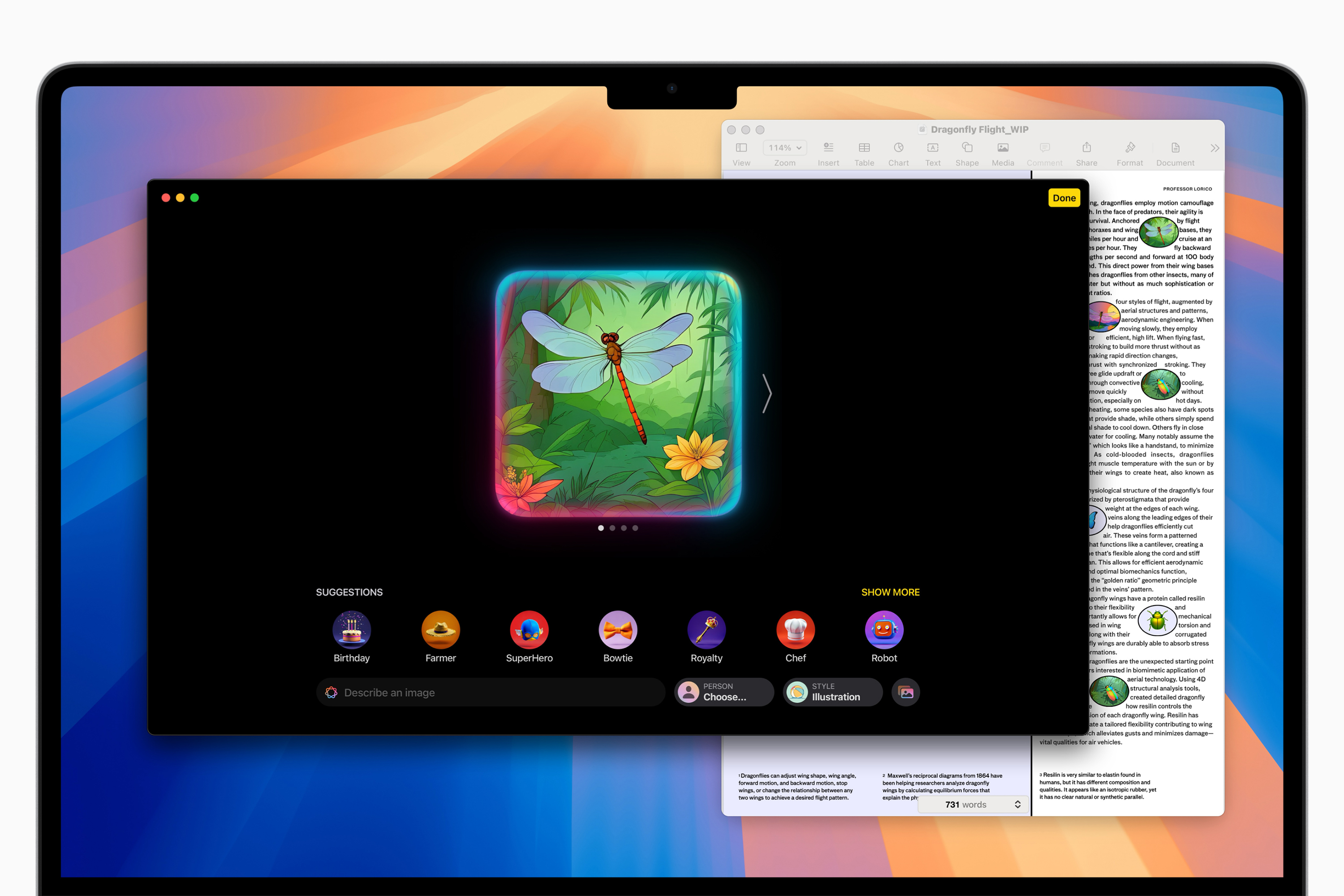 애플 맥북에어 M4는 Apple Intelligence를 이용해서 자신의 필요에 맞는 이미지를 바로 생성해서 사용할 수 있습니다. 페이지나 키노트 등 애플 앱 등에서 사용할 수 있다고 하는데요. 생산성을 높일 수 있는 기능이라고 할 수 있습니다. 실제로 마이크로소프트도 그렇고 문서 작업에 AI 인공지능 기능을 접목하는 시도가 계속되고 있습니다.