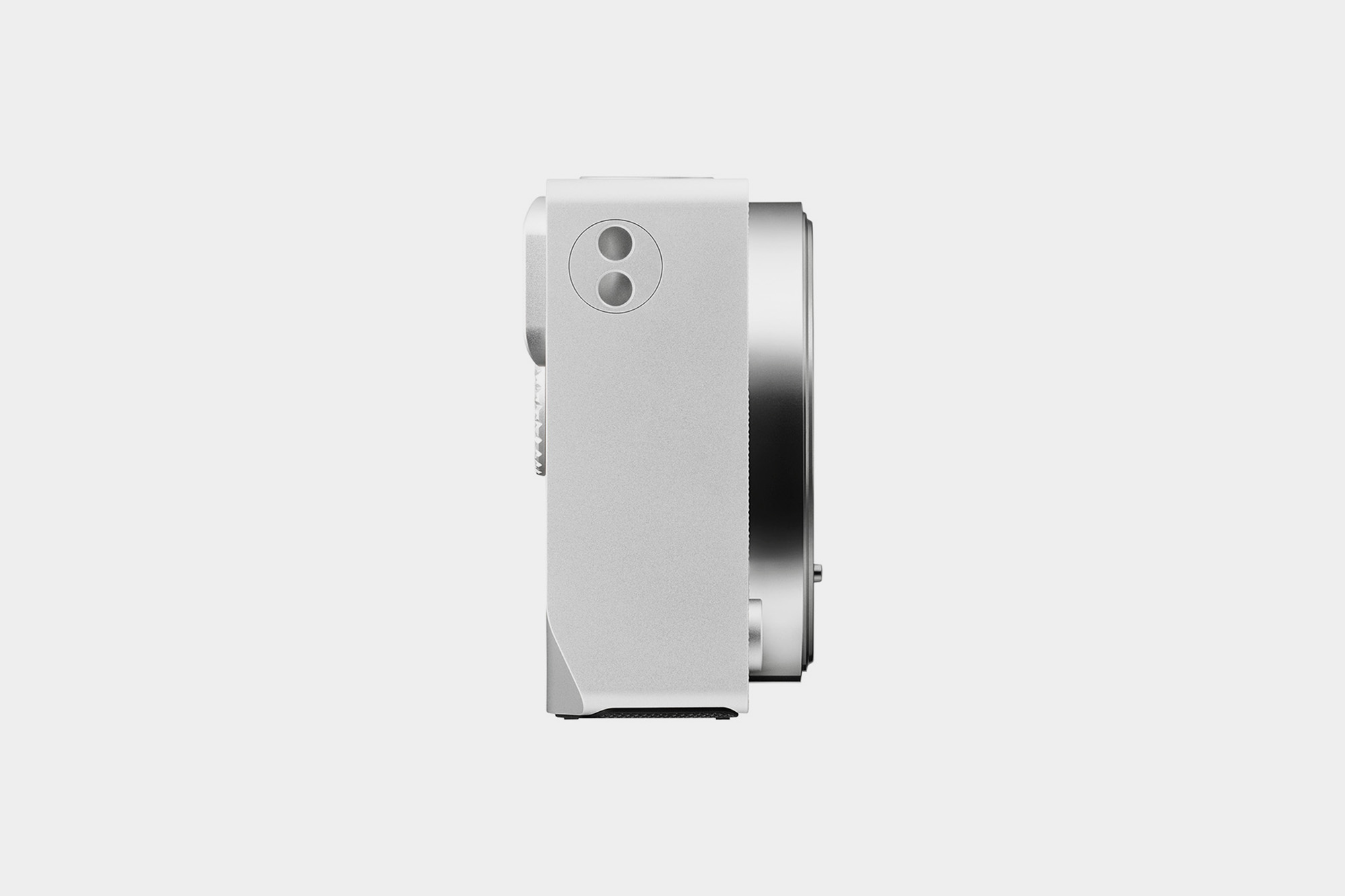 상단에는 별도의 다이얼 없이 셔터 버튼과 함께 아마도 마이크로 보이는 구멍이 2개 뚫려 있습니다. 그리고 두께는 36.8mm인데요. 크게 부담이 되는 편은 아니라고 생각되었습니다.