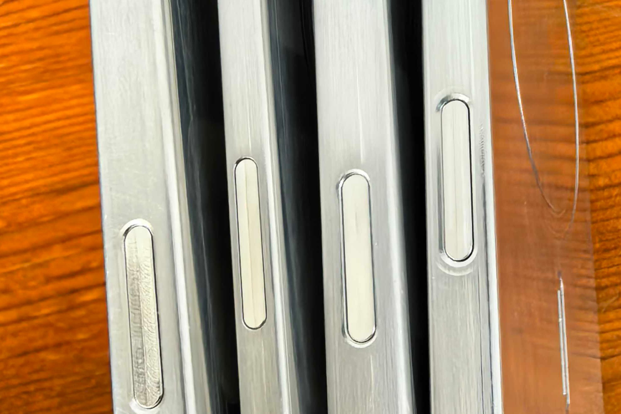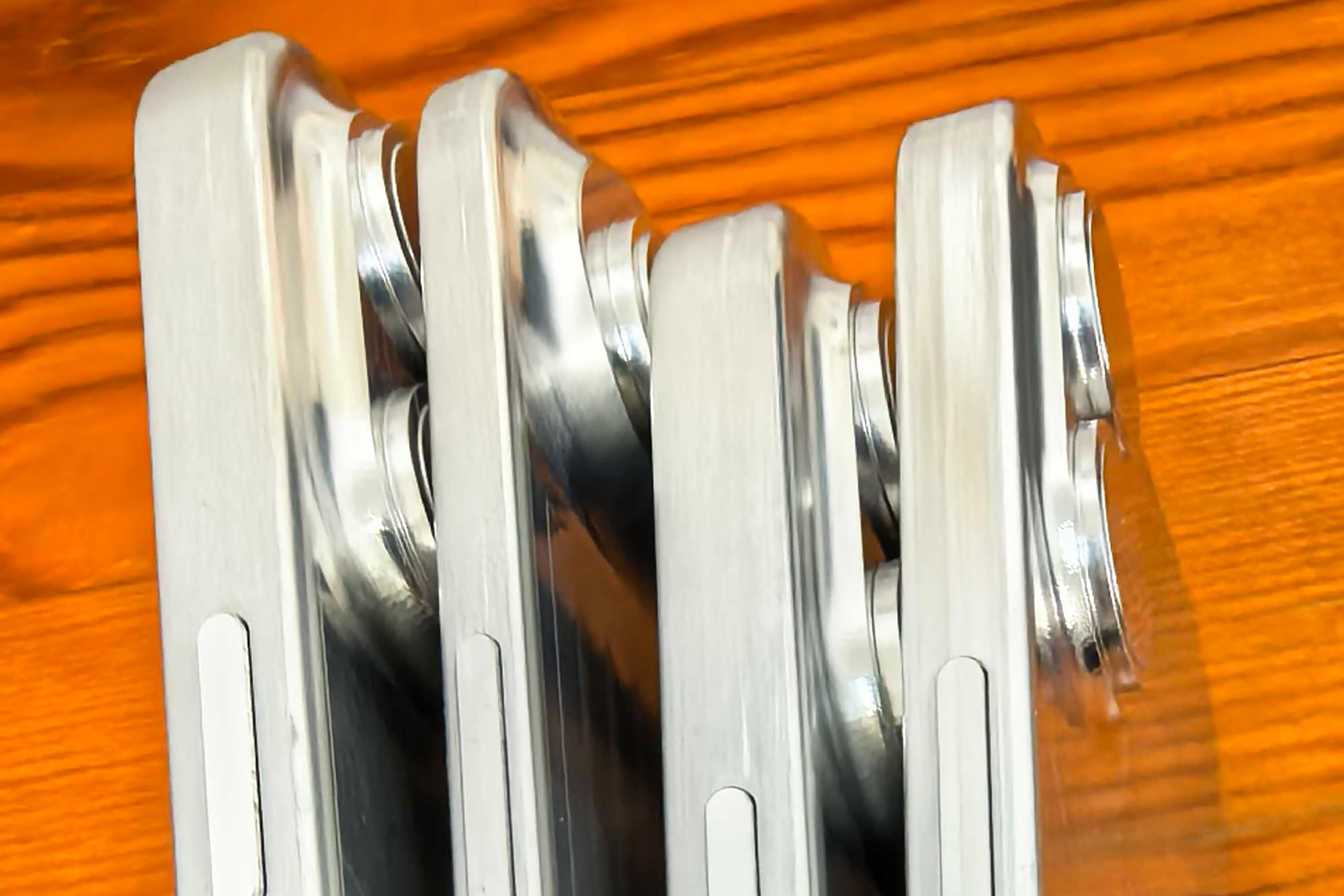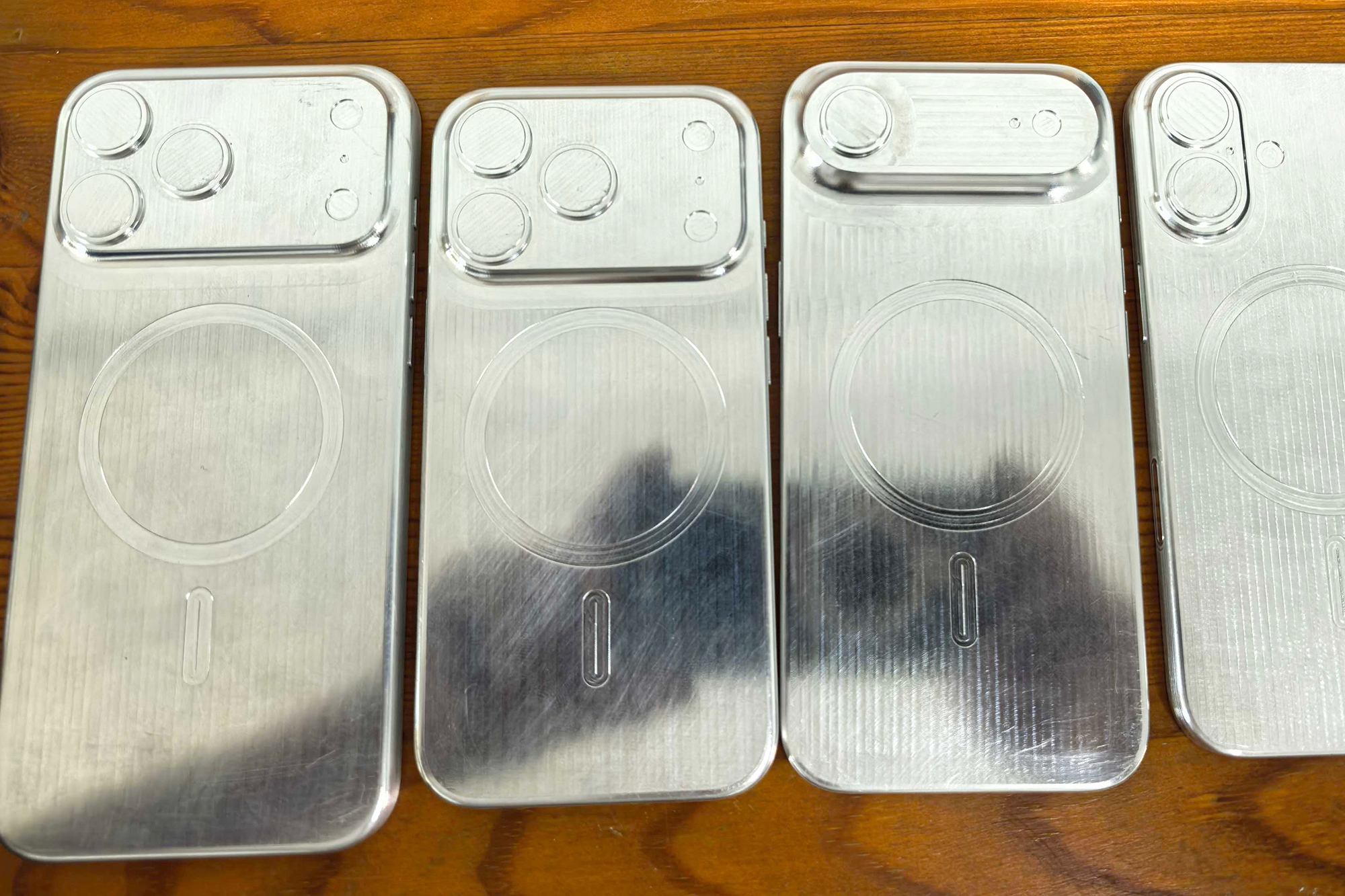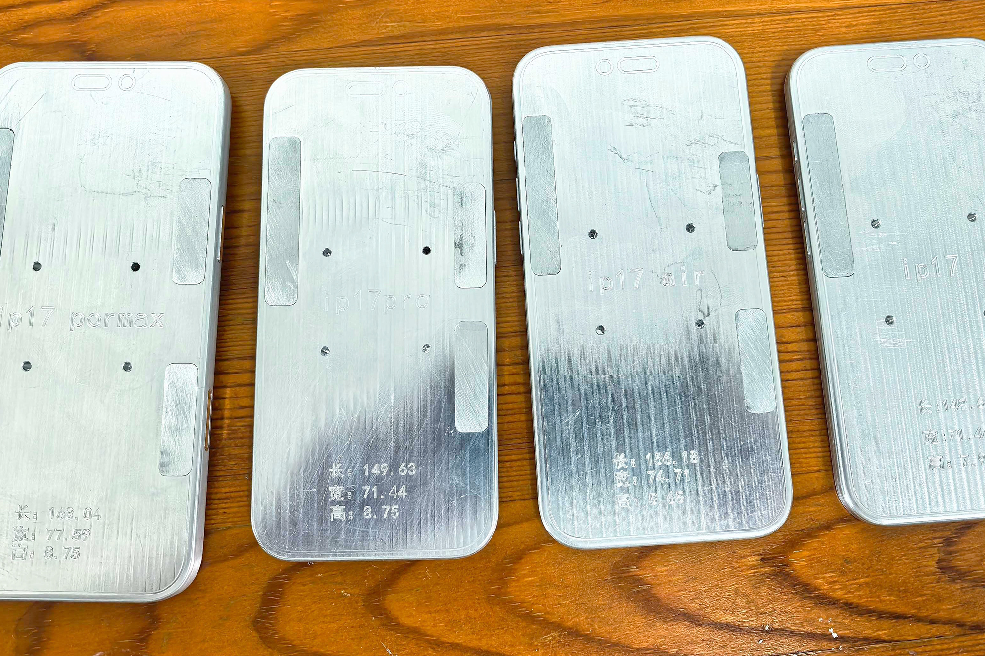 이번에 유출된 아이폰 17 시리즈의 금형을 살펴보면 왼쪽부터 아이폰 17 프로 맥스, 아이폰 17 프로, 아이폰 17 에어, 아이폰 17로 보이는데요. 프로와 에어 모델은 카메라섬의 크기가 상당히 커진 것을 확인할 수 있습니다. 그리고 뒷면의 소재 역시도 메탈과 강화 유리 두 가지가 부위별로 다르게 사용될 가능성이 있다고 합니다.