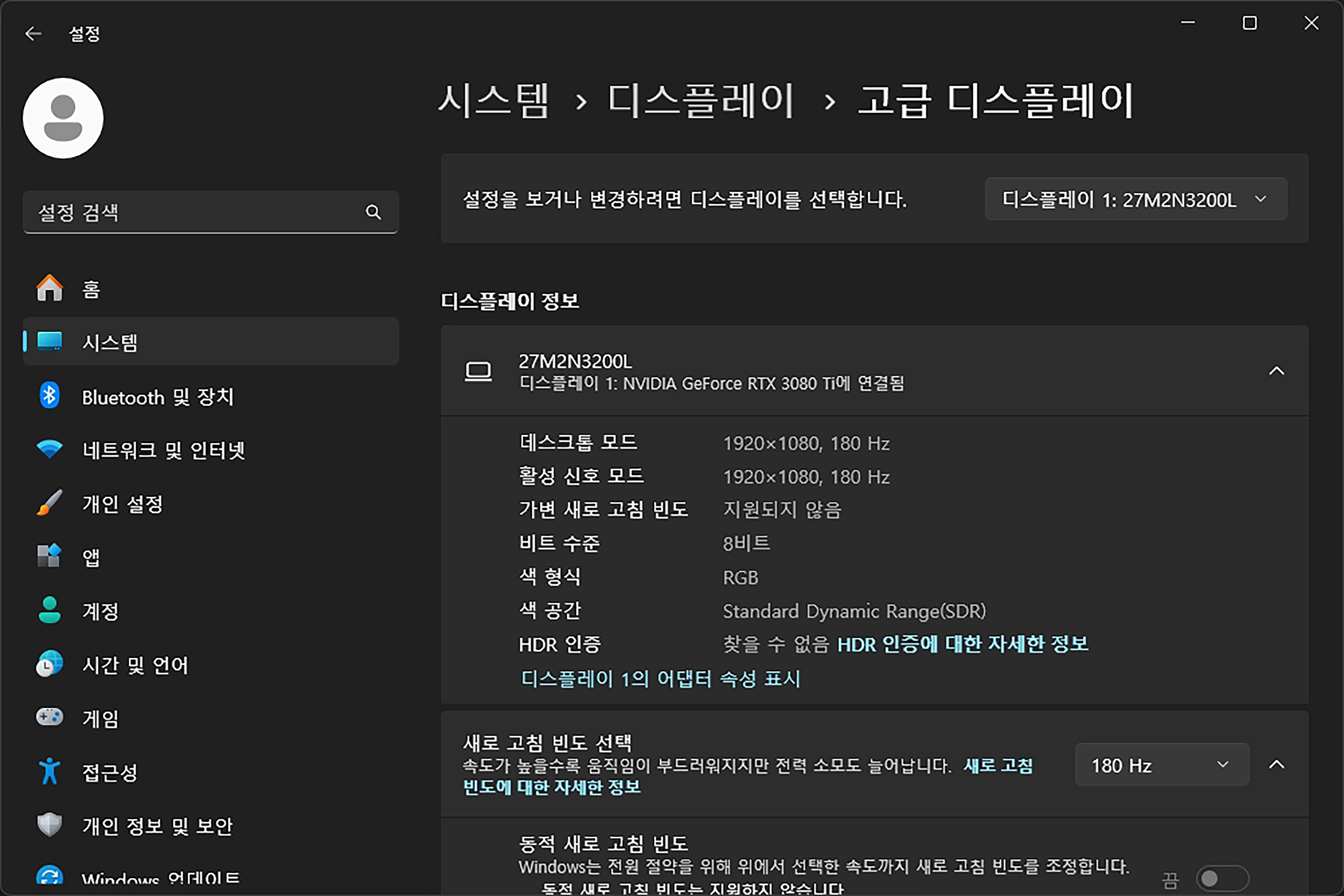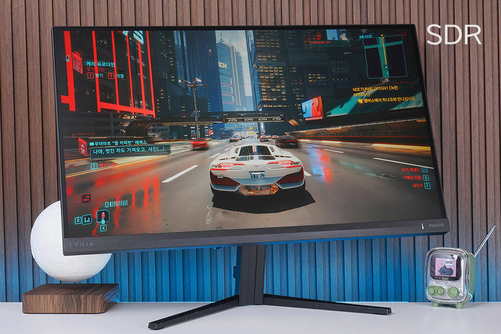 그리고 필립스 에브니아 27M2N3200L 모니터는 HDR10을 지원하는데요. 윈도우 11 기준으로 WIN+ALT+B 단축키로 간단하게 켜고 끌 수 있고 지원되는 게임이나 영상을 더욱 풍부한 색감으로 플레이하고 감상할 수 있습니다. 참고로 최대 밝기는 300cd/m2로 무난한 편입니다.
