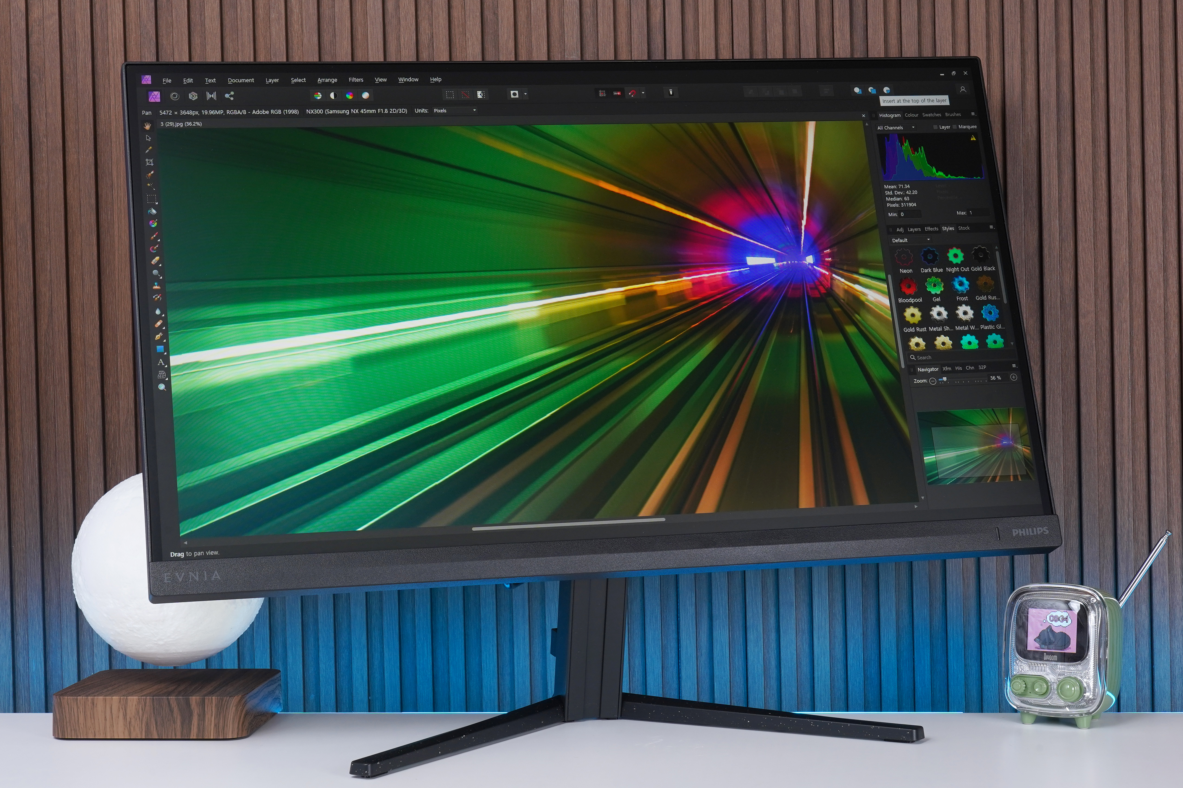 필립스 에브니아 27M2N3200L 모니터는 NTSC 104%와 sRGB 128%, DCI-P3 95%, Adobe RGB 102% 색역 기준을 충족합니다. 그래서 전문적인 그래픽 점용 모니터와 비교하면 부족할 수 있지만 간단하게 사진이나 동영상을 편집하는 용도로 활용하기에 크게 부족함 없는 성능을 제공합니다.