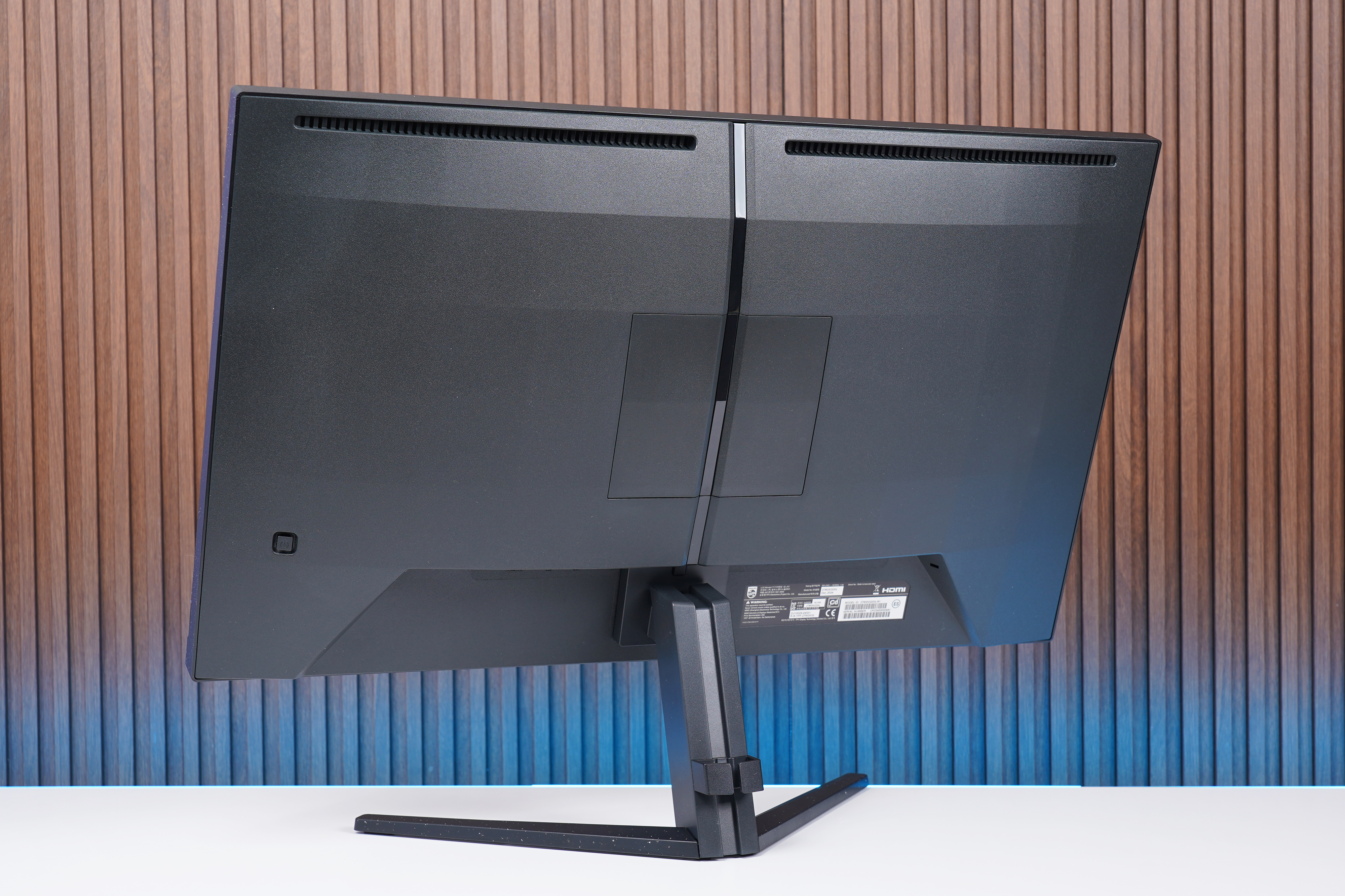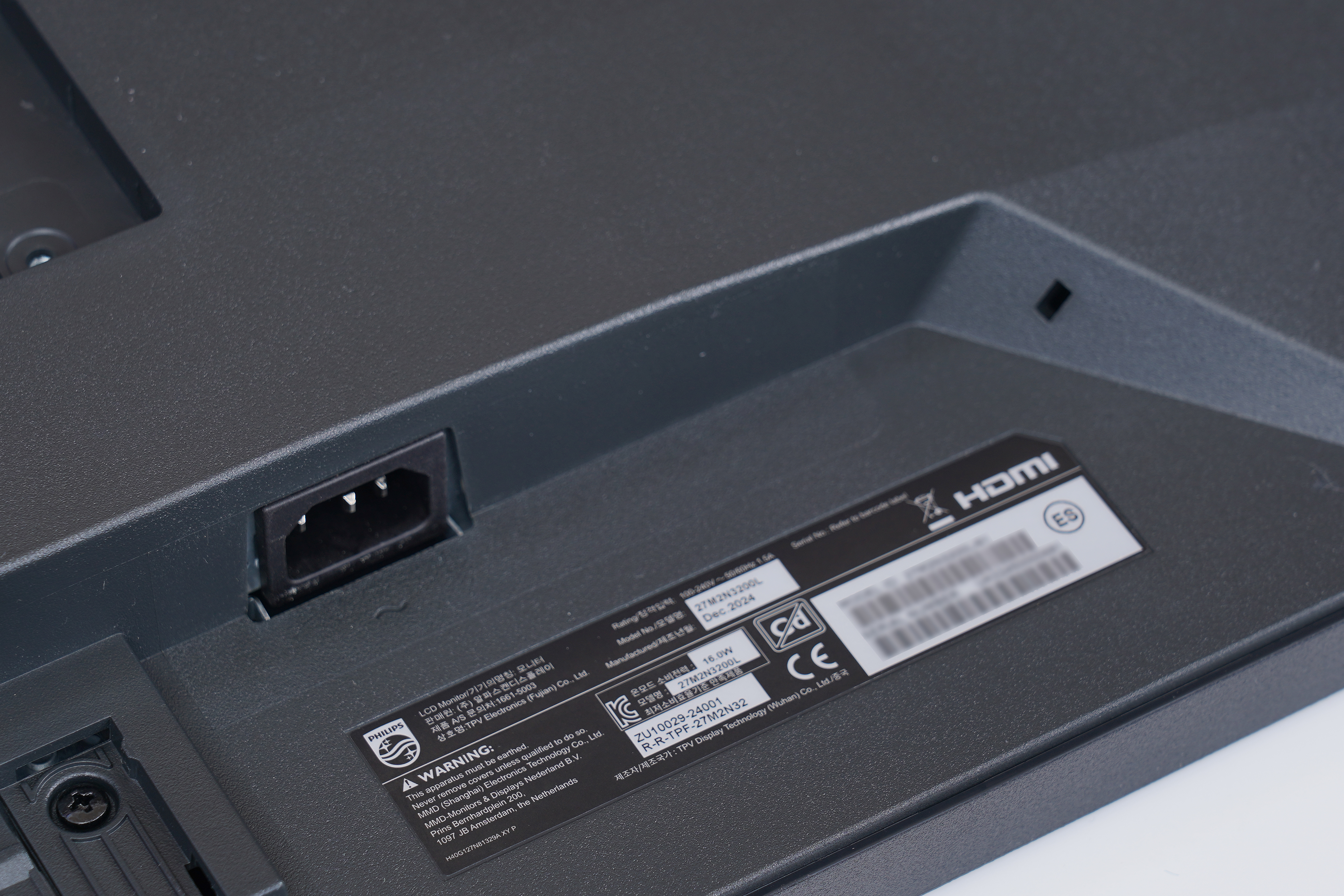 필립스 에브니아 27M2N3200L 모니터의 뒷면은 차별화된 픽셀 표면 디자인이 적용되었습니다. iF 디자인 어워드와 레드닷에서 동급 최고의 게임 경험을 전달하도록 설계되었다는 평가를 받았다고 하는데요. 상당히 세련된 편이라는 인상을 받았습니다. 모니터를 벽 쪽에 완전히 붙여서 사용하지 않는 분들에게 유용한 부분입니다.