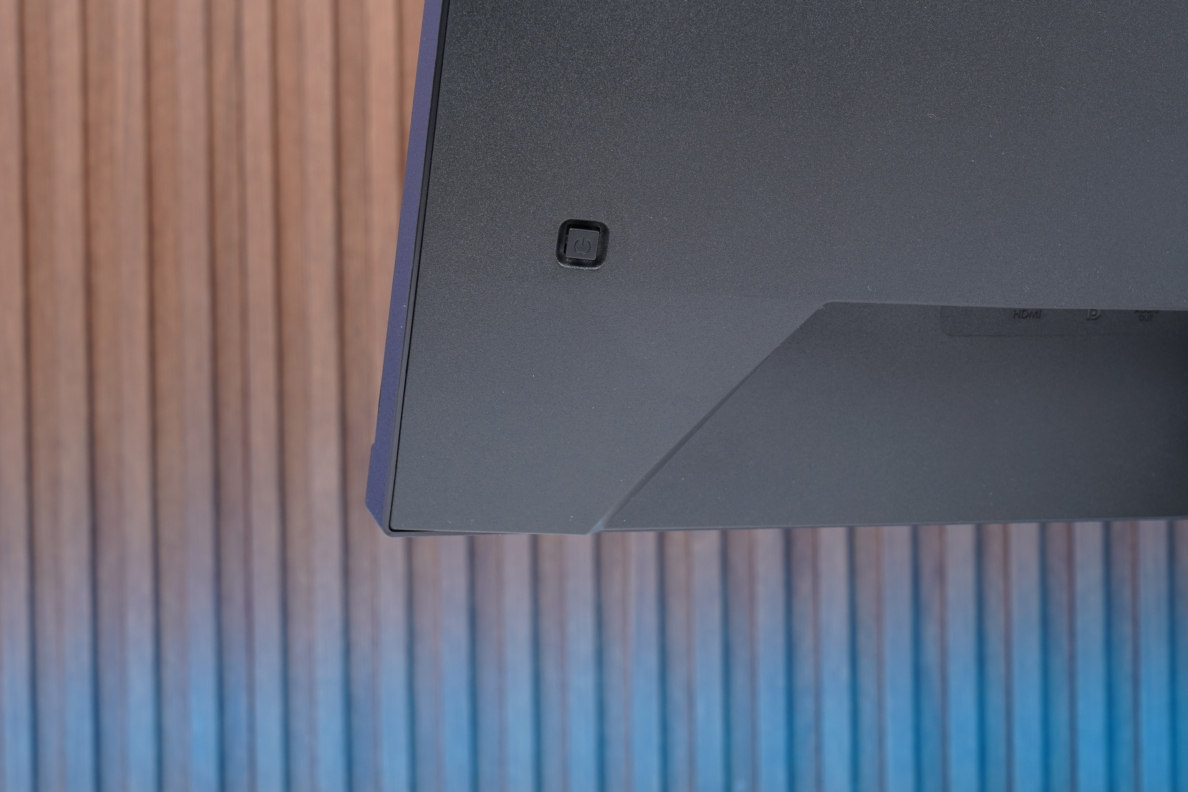 뒷면의 왼쪽에는 전원 버튼이 배치되어 있는데요. 오른손을 뒤로 뻗어서 조작할 수 있도록 설계되었고 상하좌우 4방향으로 토글할 수 있기 때문에 하나의 버튼을 통해서 OSD를 변경할 수 있습니다. 여러 개의 별도 버튼이 탑재된 제품과 비교해서 직관적인 편이라고 생각되었습니다.