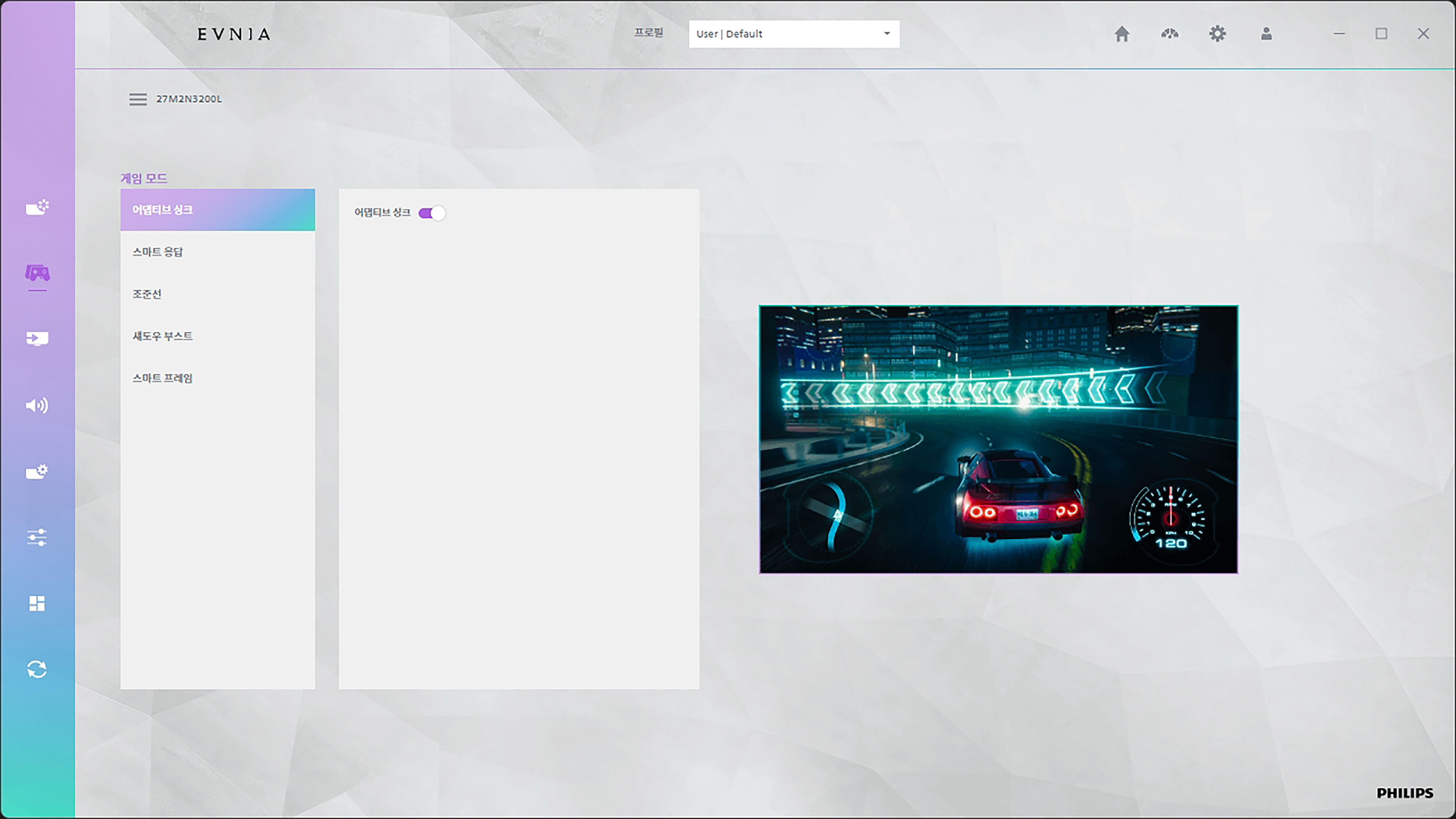 필립스 에브니아 27M2N3200L 모니터는 Evnia Precision Center라는 전용 소프트웨어를 통해서 편리하게 관리를 할 수 있는데요. 모니터의 뒤쪽에 배치되어 있는 OSD 버튼을 누르지 않아도 된다는 점이 편리한 부분입니다.