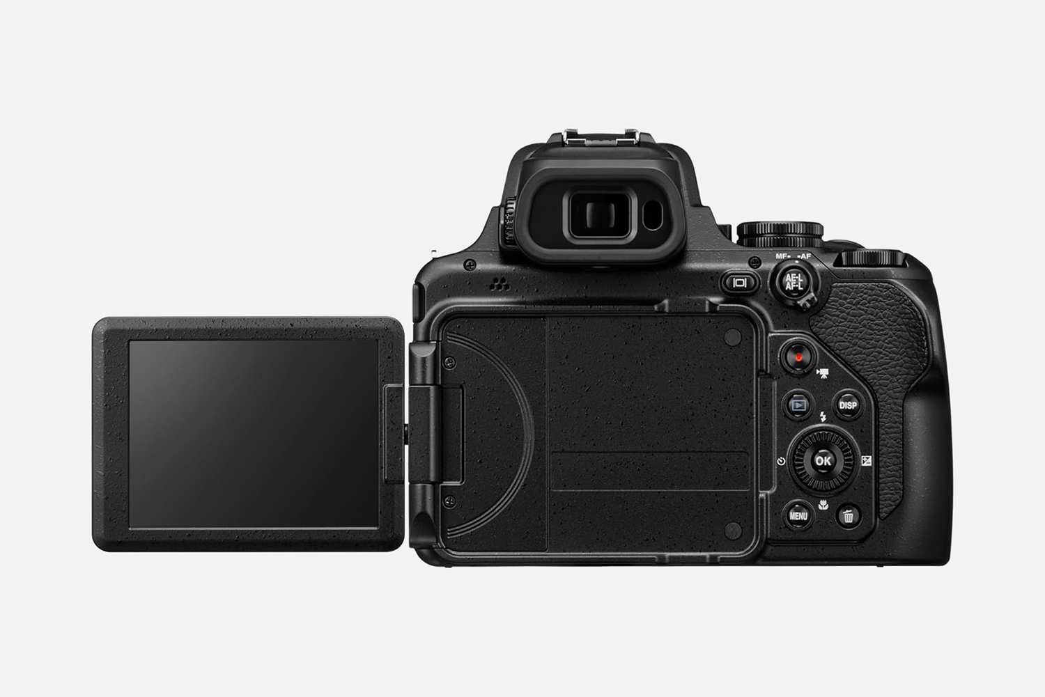 니콘 쿨픽스 P1100 카메라의 뒷면을 살펴보면 3.2인치 디스플레이가 탑재되어 있습니다. 그리고 버튼과 다이얼이 많은 편이어서 편리하게 활용할 수 있습니다. 참고로 16M(4608×3456) 사진과 2160/30p (4K UHD) 동영상을 촬영할 수 있습니다.