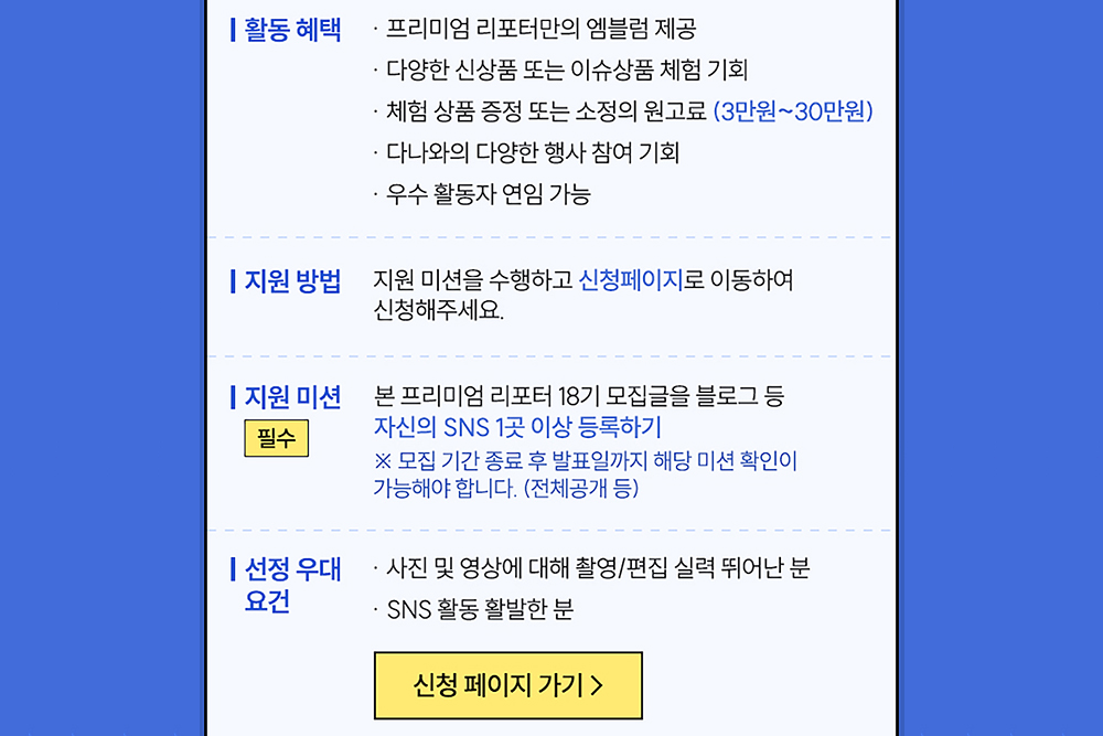 지금까지 다나와 프리미엄 리포터 18기에 지원하는 방법을 확인해 보았습니다. 새로운 제품에 대한 리뷰를 자성할 수 있는 것은 물론이고 소정의 원고료까지 제공되기 때문에 평소 신제품 리뷰에 관심이 있는 분들이라면 한 번 지원해 보는 것을 추천합니다.