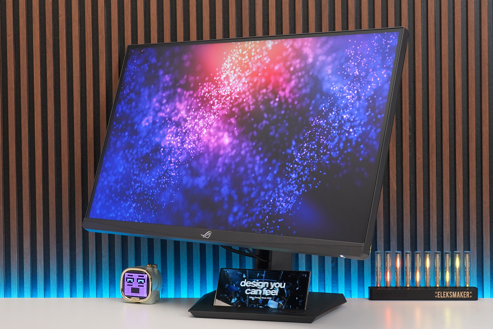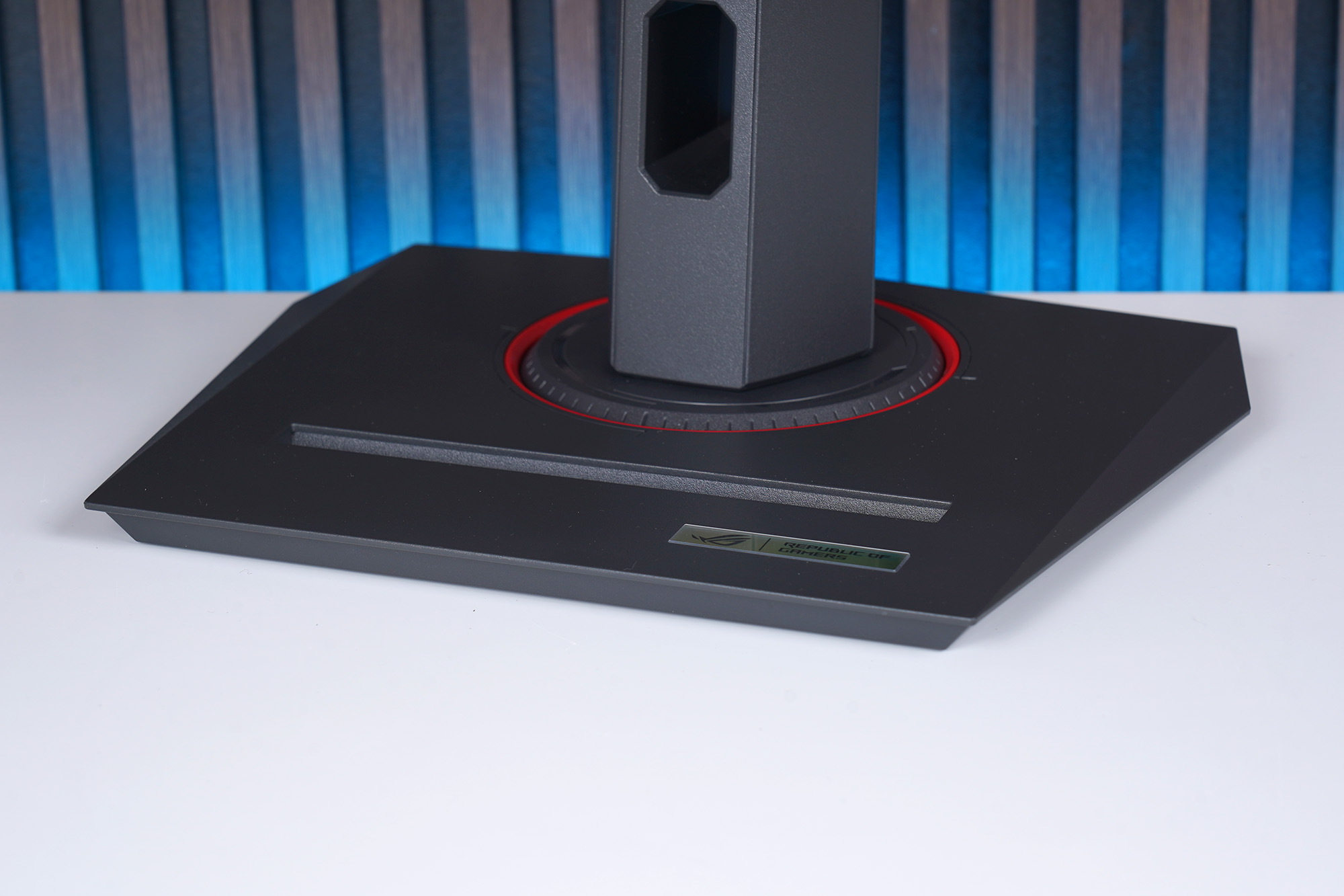 ASUS ROG STRIX XG27UCG 모니터에는 높이 조절과 회전 그리고 기울기와 피벗을 지원하는 완성도 높은 스탠드가 포함되어 있습니다. 참고로 별도의 도구 없이 조립할 수 있도록 설계되었습니다.