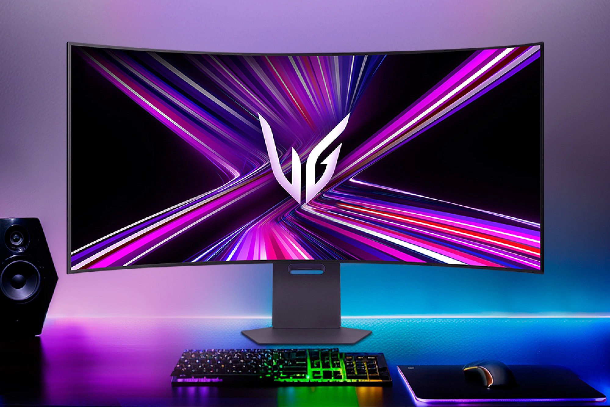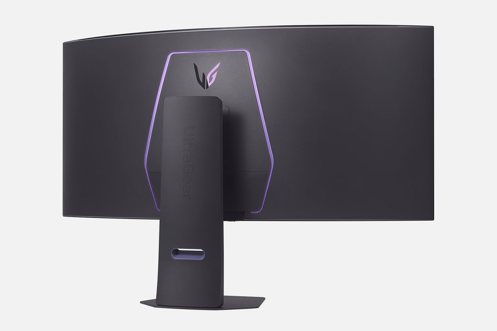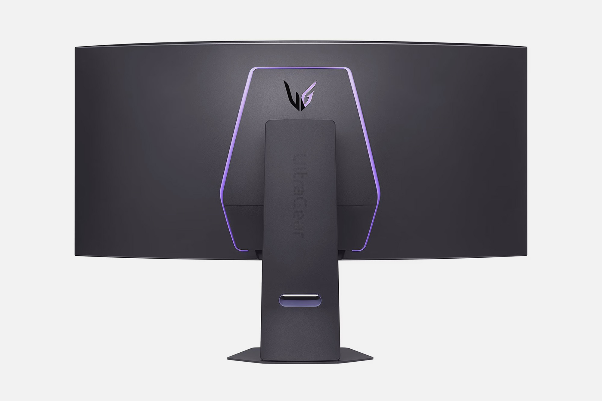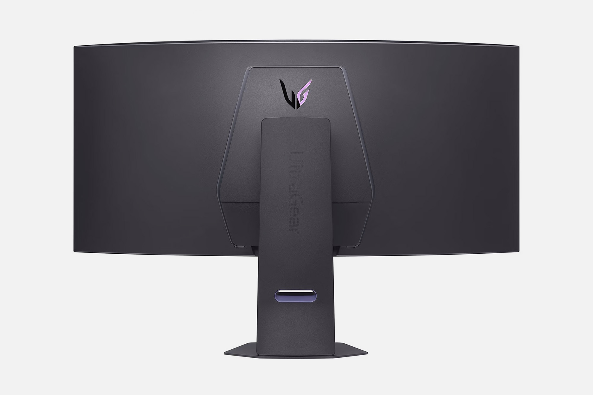 LG 45GX950A 5K2K OLED 게이밍 모니터의 뒷면 역시도 깔끔한 스타일로 디자인되었습니다. 그리고 게이밍 제품답게 조명이 탑재된 것을 확인할 수 있습니다. 그 외에도 10W x2 스피커가 내장되어 있습니다.