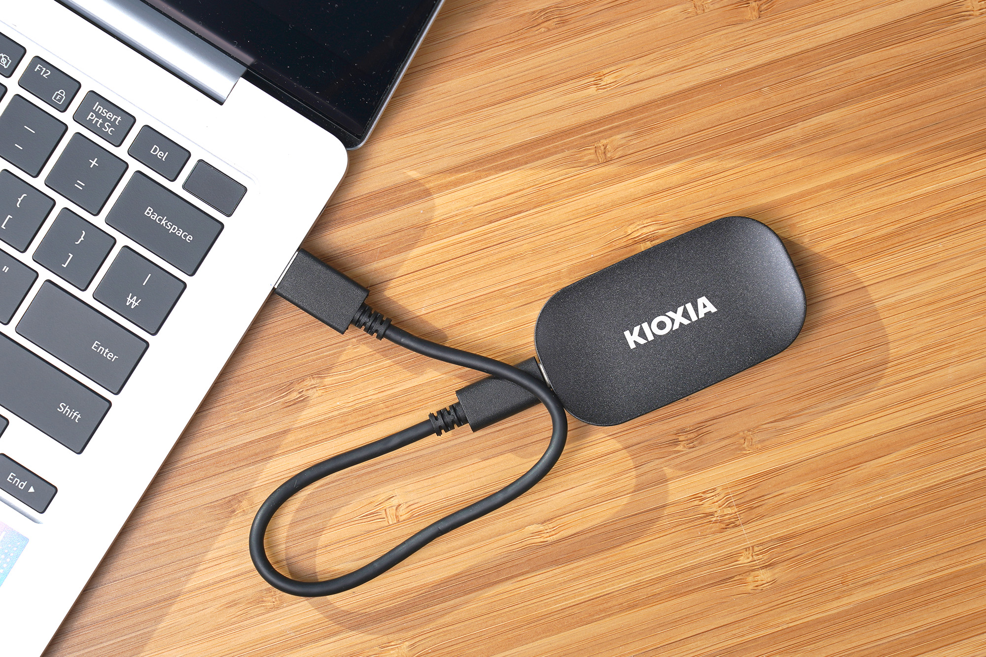 이제부터는 키옥시아 PLUS G2 외장 SSD의 활용 방법을 살펴보면 가장 일반적인 형태는 대용량 멀티미디어 데이터 등을 노트북이나 데스크톱 PC에서 서로 전달할 때 활용하는 것입니다. 클라우드를 이용하는 것보다 속도나 보안 측면에서 유리한 부분이 있습니다.