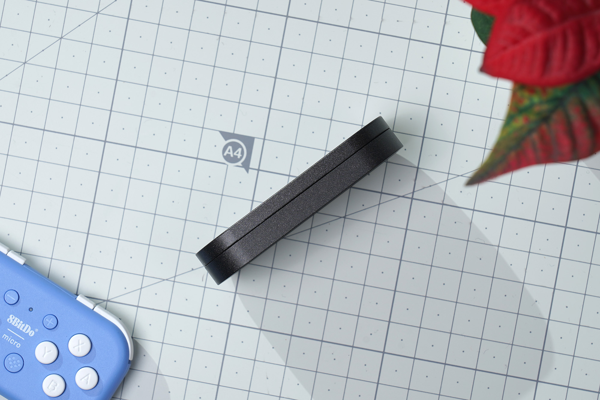 디자인적인 특징을 살펴보면 윗면과 아래쪽은 모두 약간 오목한 형태로 제작되었고 모서리 부분이 라운드 처리되어있다는 점이 재미있는 부분입니다. 그리고 블랙 컬러에 약간의 펄이 들어간 형태로 마무리되어서 반짝거리는 느낌을 주는 편입니다. 아래쪽에 용량과 함께 시리얼 넘버가 인쇄되어 있습니다.