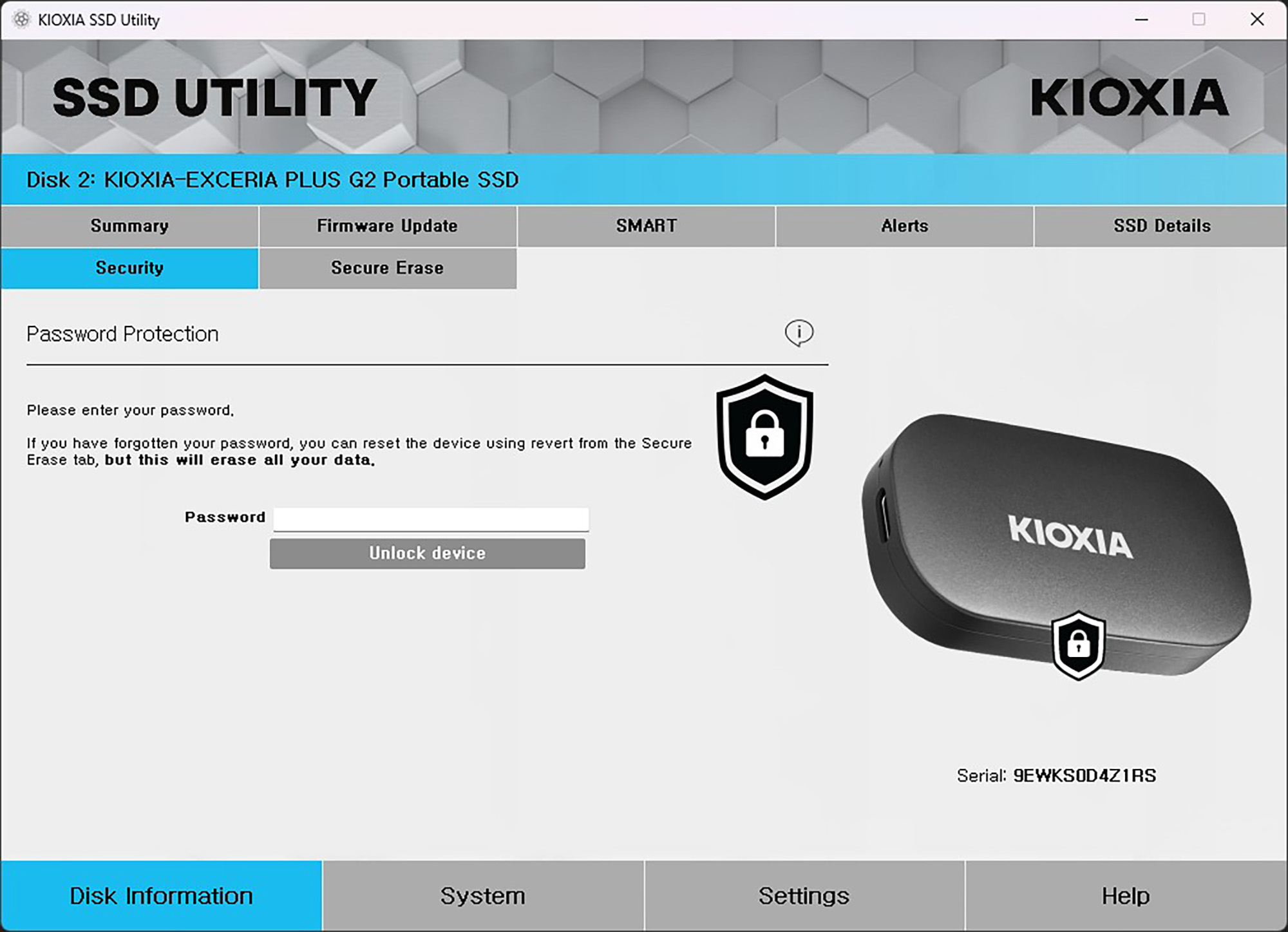 SSD UTILITY에서 제가 유용하다고 생각했던 기능은 바로 시큐리티입니다. 비밀번호 입력 없이는 키옥시아 PLUS G2 외장 SSD가 시스템에 마운트되지 않도록 도와주는 역할을 하는데요. 보안이 중요한 분들에게 유용한 옵션입니다. 그리고 안전하게 데이터를 삭제할 수 있는 기능도 제공하는데요. 참고로 SSD는 HDD와 비교해서 상대적으로 데이터를 복구하기 어렵습니다. 그래서 사용할 때 주의해 주어야 합니다.