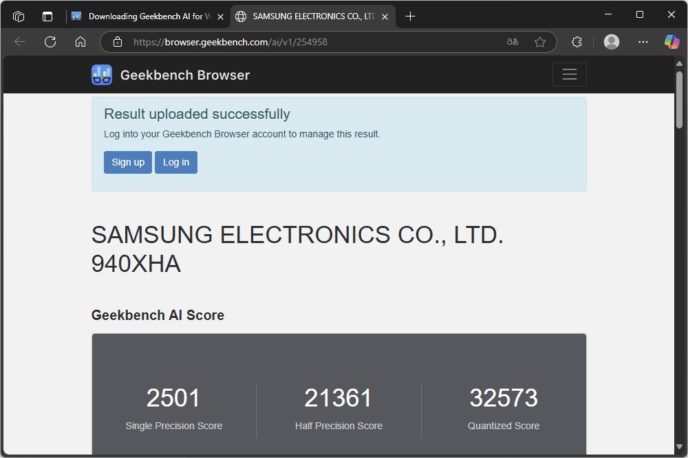 실제로 Geekbench 긱벤치 AI 벤치마크 소프트웨어가 돌아가는 도중에는 NPU가 활성화되는 것을 확인할 수 있고 삼성전자 갤럭시북5 프로 기준으로 Single Precision 점수는 2501점, Half precision점수는 21361점 그리고 Quantized 점수는 32573점으로 측정되었습니다.