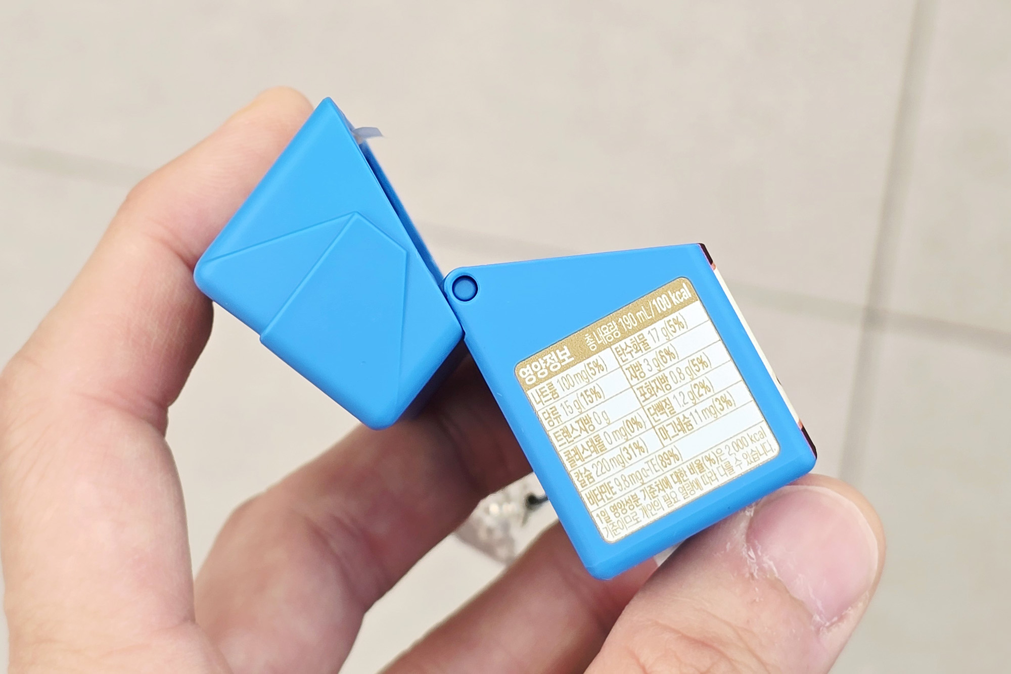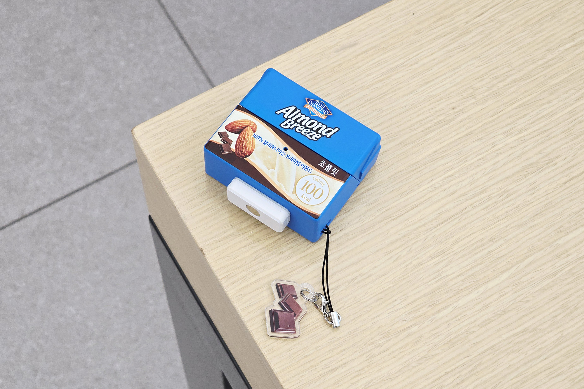 아몬드브리즈 오리지널 케이스를 자세하게 살펴보면 용량이나 칼로리 그리고 유통기한과 영양 정보까지 상당히 구현이 잘되어 있는 것을 확인할 수 있고 앙증맞은 디자인의 아몬드 키링이 부착되어 있습니다. 평소에 다이어티를 위해서 아몬드브리즈를 즐기는 분들이라면 상당히 메리트가 있을 만한 제품이라고 생각되었습니다.