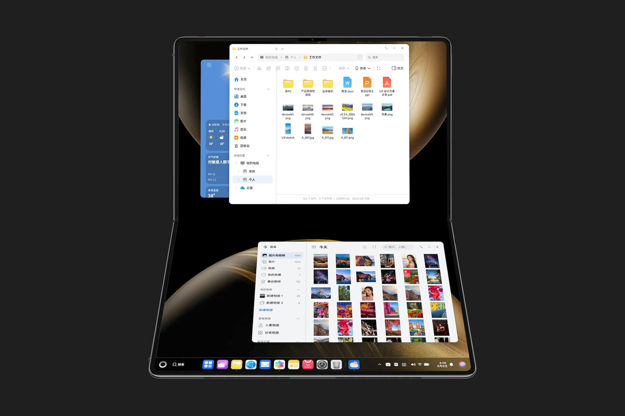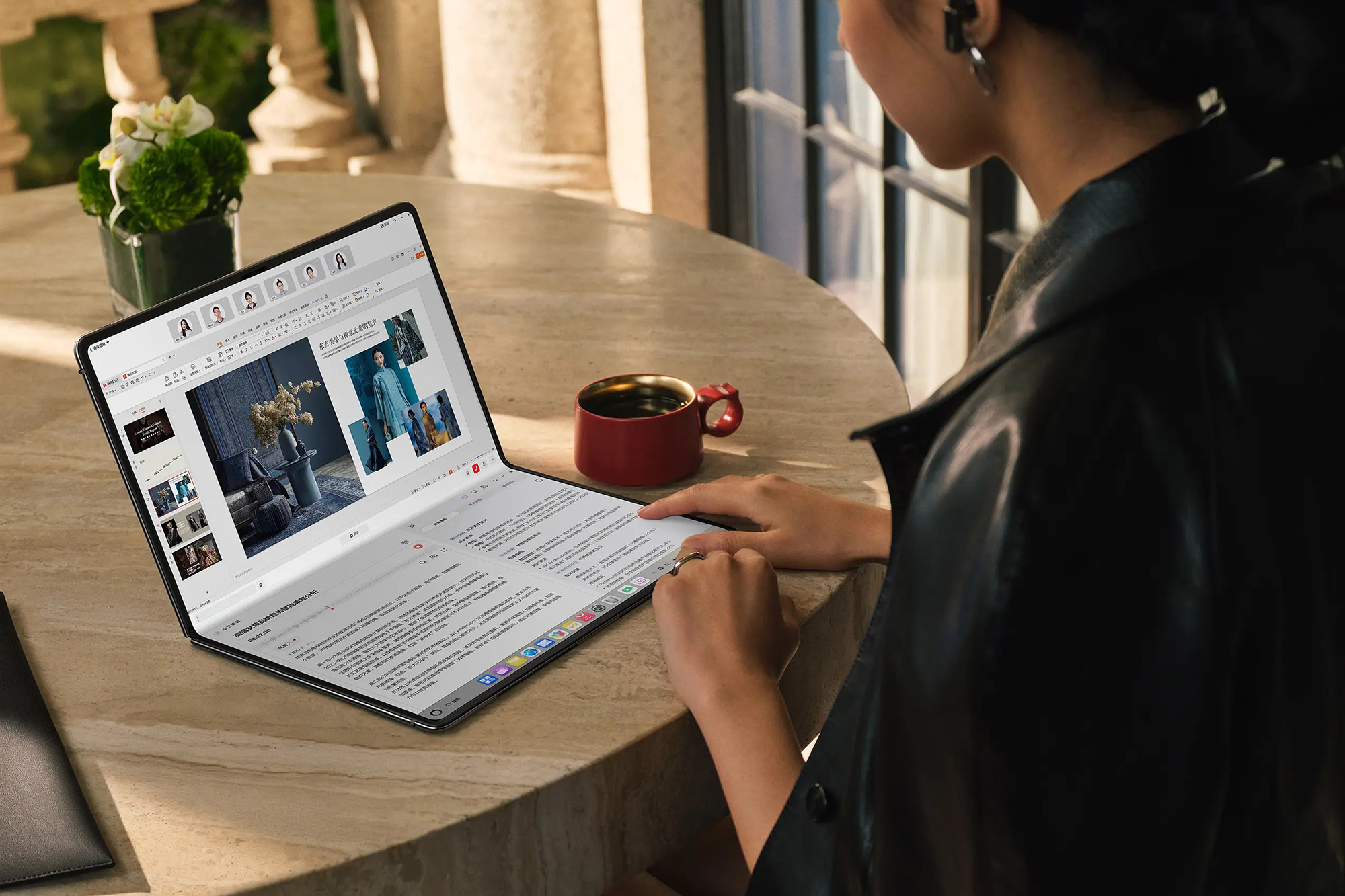운영 체제 : 하모니 OS 5 (HarmonyOS 5) 프로세서 : 미발표? 메모리 : 32GB 스토리지 : 1TB, 2TB 디스플레이 : 18인치 3296 x 2472 플렉서블 OLED 배터리 : 74.69Wh 두께 : 펼쳤을 때 7.6mm(왼쪽), 7.3mm(오른쪽) / 닫혔을 때 14.9mm 무게 : 1.16kg 화웨이 메이트북 폴드의 스펙은 오묘한 느낌을 주는 편인데요. 우선 가장 중요한 CPU의 정보가 제대로 공개되지 않았습니다. 그리고 운영체제는 자체 개발한 하모니 OS 5가 탑재되었는데요. 윈도우 버전이 발표되기 전까지 중국을 제외한 다른 나라에서 제대로 활용하기는 어려울 것으로 보입니다.