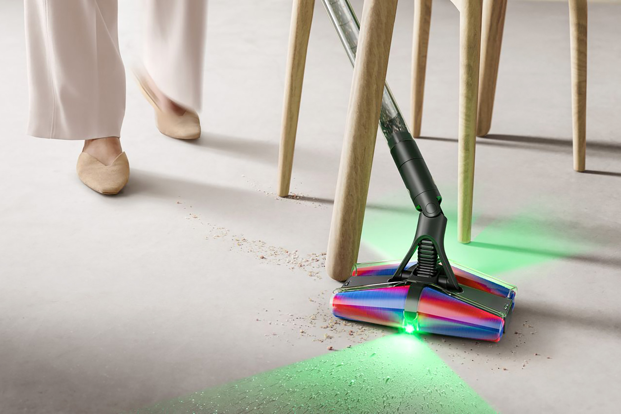 다이슨 펜슬백 플러피 콘 슬림 무선 청소기의 주요 기능을 확인해 보면 일루미네이션 (초록 불빛)이 탑재되었는데요. 먼지를 조금 더 선명하게 볼 수 있도록 도와주는 역할을 합니다. 실제로 활용도가 높은 편입니다. 그리고 모서리까지 완벽하게 청소할 수 있도록 헤드가 설계되었다는 점도 주목해 보아야 할 부분입니다.