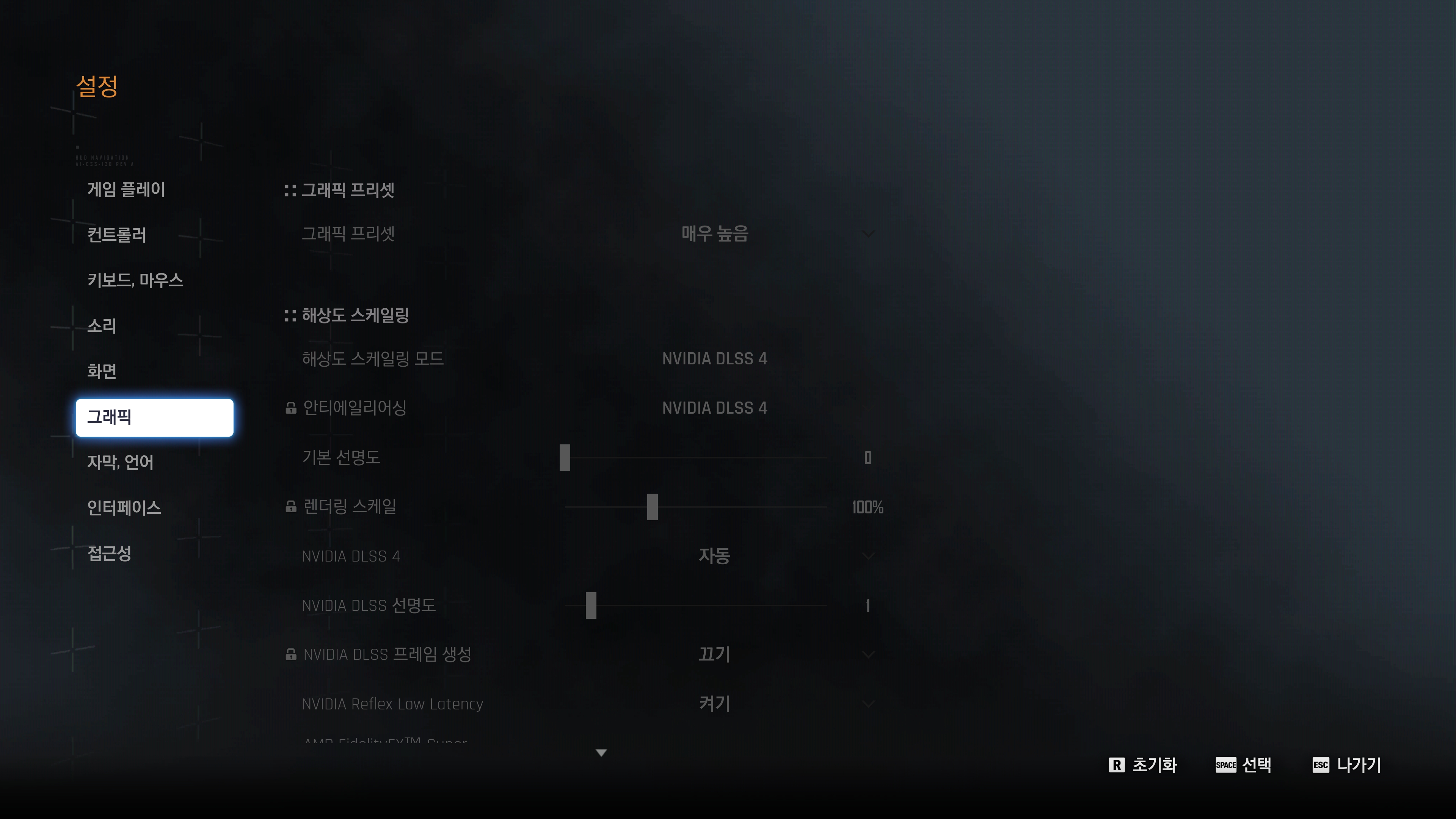 스텔라 블레이드 데모 체험판의 화면과 그래픽 설정을 확인해 보면 자신이 사용하는 모니터에 맞는 해상도로 자동으로 설정되고 그래픽에서는 다양한 프리셋이 준비되어 있습니다. 그리고 NVIDIA DLSS4와 같은 기술도 지원합니다.
