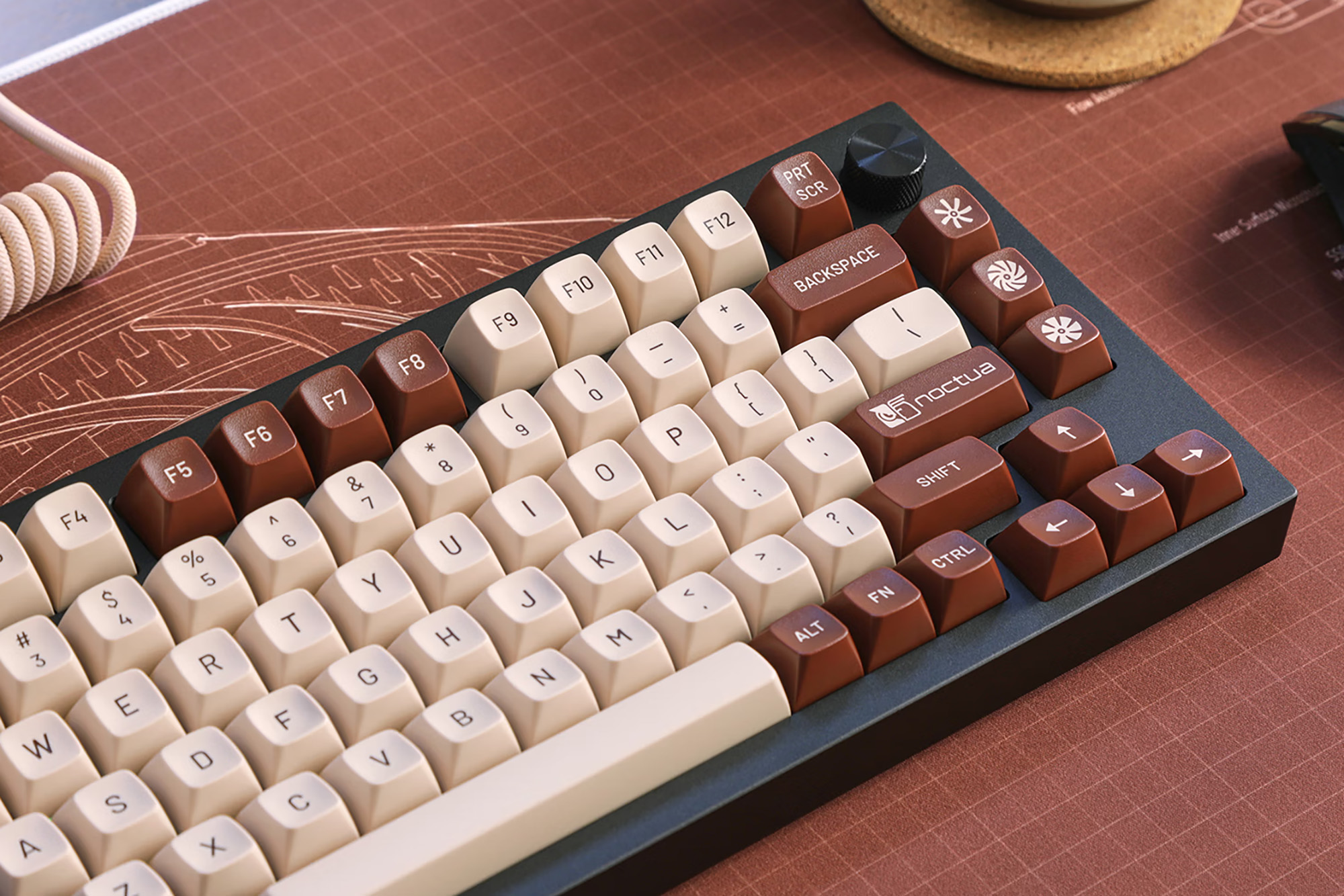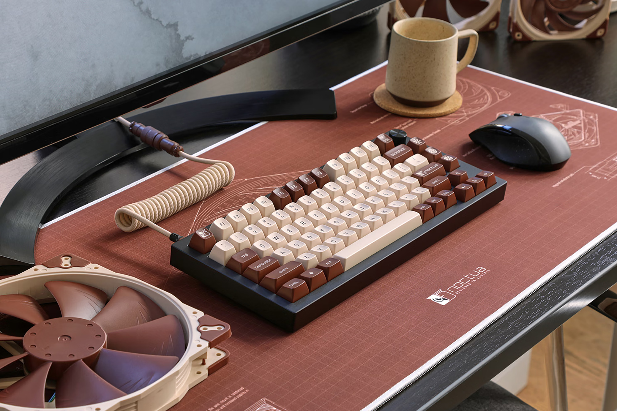 녹투아(Noctua)는 컴퓨터에 관심이 있는 분들에게는 익숙한 오스트리아의 쿨링 솔루션 브랜드인데요. 뛰어난 성능을 제공하는 것은 물론이고 특유의 베이지 + 갈색(똥색) 색상으로 상당히 유명합니다. 그리고 이번에 미국의 공동구매 사이트인 드랍(DROP)과의 협업을 통해서 특유의 색상 조합을 강조한 키보드 키캡과 항공 케이블 그리고 데스크매트를 발표했는데요. 특징을 자세하게 확인해 보도록 하겠습니다.