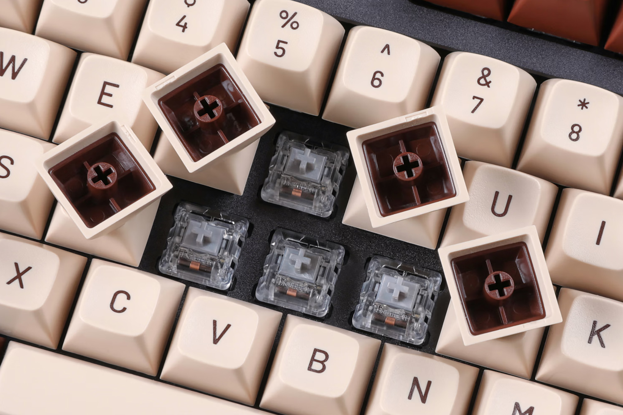 Drop + MiTo MT3 Noctua 키캡 세트를 확인해 보면 상징적이라고 할 수 있는 베이지와 갈색 컬러가 인상적이라는 것을 확인할 수 있습니다. 참고로 특징을 확인해 보면 MiTo가 다자인을 맡았고 MT3 프로파일(SA와 유사해 보입니다.) 그리고 더블샷 ABS 소재로 제작되었습니다.