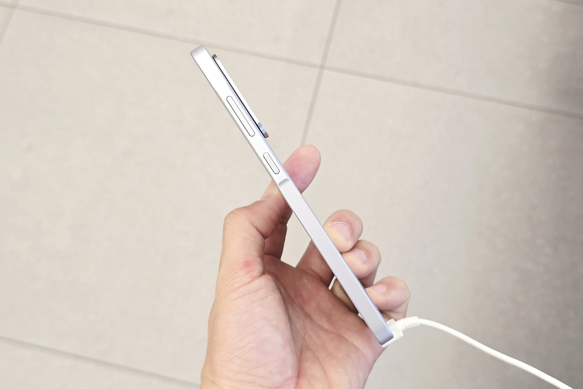 갤럭시 A36 5G의 크기는 78.2 × 162.9 × 7.4mm이고 무게는 195g입니다. 이전 세대의 제품과 비교해서 얇아지고 가벼워졌는데요. 어느 정도는 체감할 수 있을 것으로 예상합니다. 그리고 옆면의 마감도 상당히 깔끔한 느낌을 주는 편이고 예전 갤럭시 모델처럼 볼륨과 전원 버튼 있는 부분이 약간 돌출된 형태로 제작되었습니다.