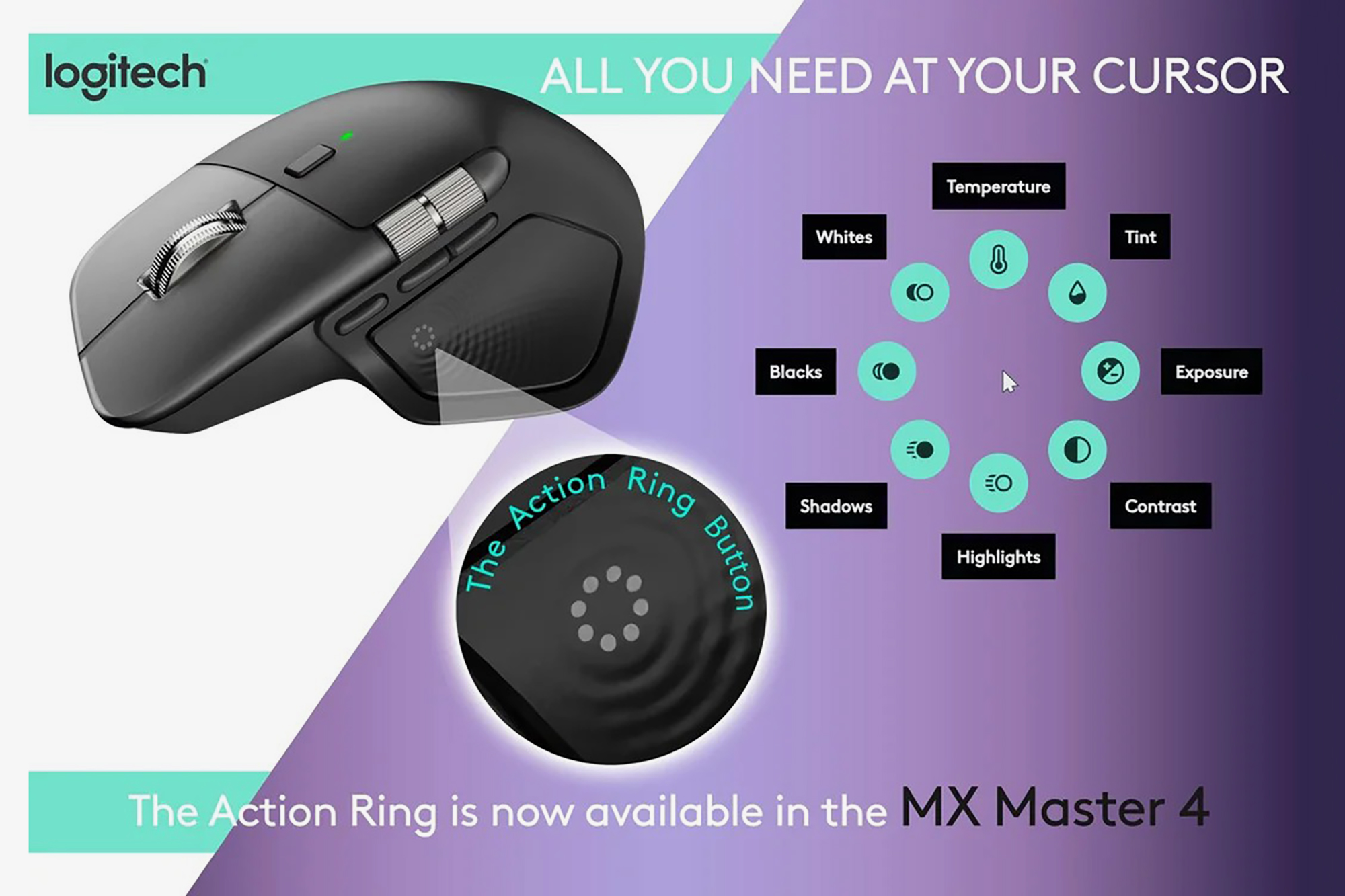 로지텍 MX 마스터 4의 옆쪽을 살펴보면 The Action Ring Botton이 새롭게 추가되었는데요. 다양한 방식으로 매핑해서 사용할 수 있을 것으로 예상합니다. 그리고 최신 트랜드에 맞게 AI 관련 기능이 추가될 수도 있다고 합니다.