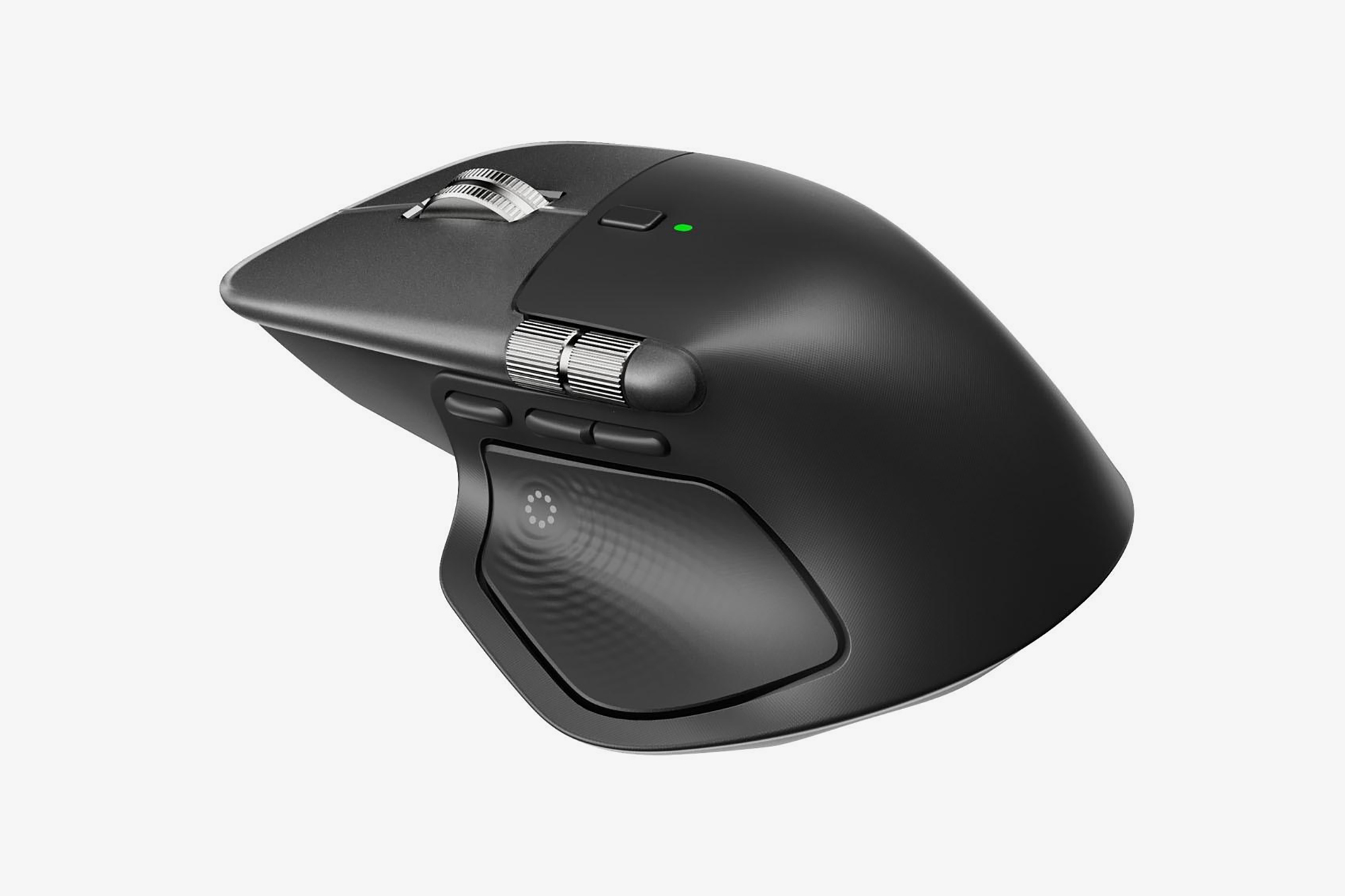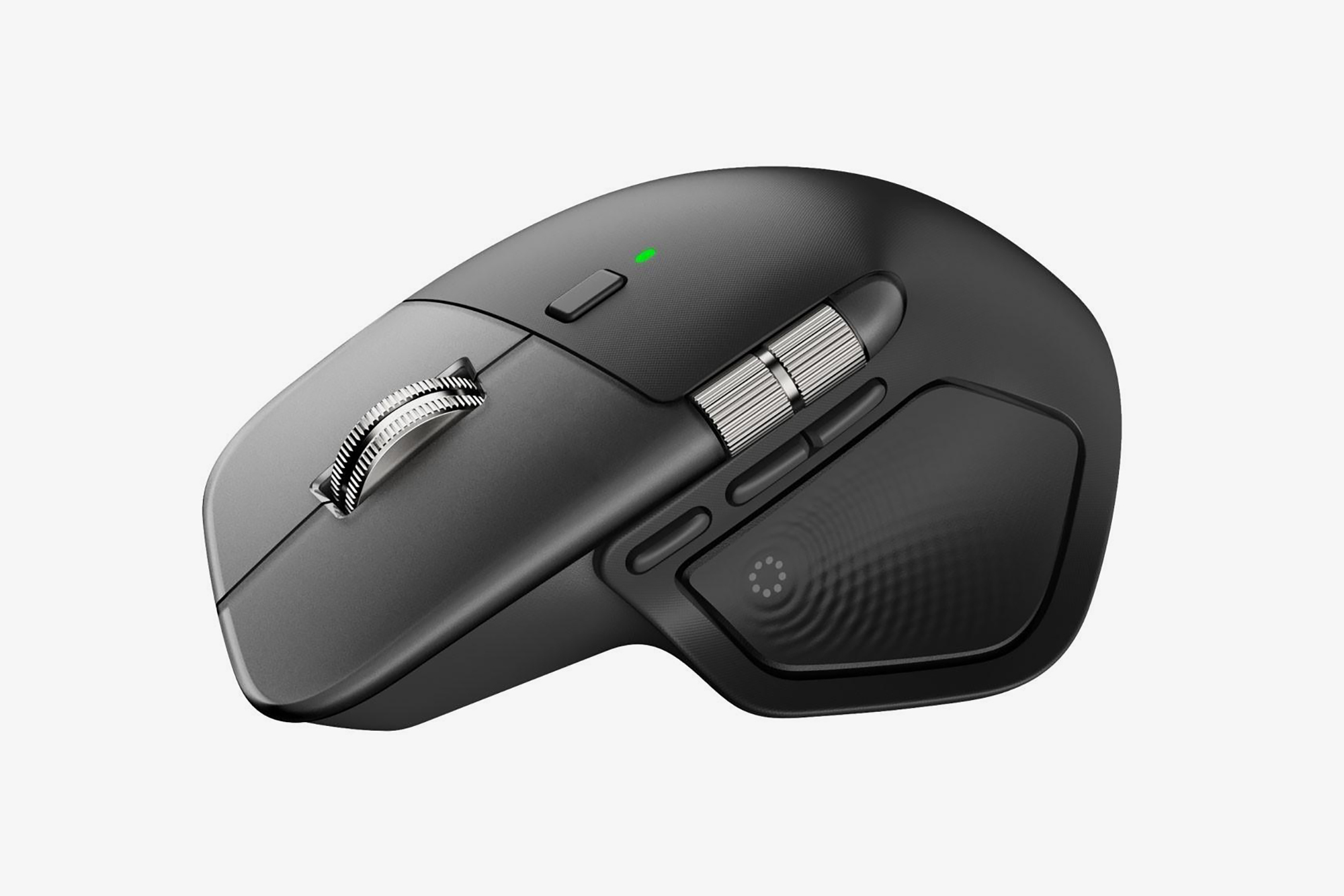 로지텍 MX 마스터 4의 디자인을 살펴보면 이전 세대의 제품과 같은 2개의 휠이 유지되고 있는데요. 메탈로 제작된 제품의 특성상 MagSpeed 전자식 휠이 유지되고 있는 것으로 보입니다. 그 외에도 옆쪽에 배치되었던 상태 표시 LED가 다시 위쪽으로 이동했습니다. 그리고 세대의 제품에서 약점으로 지적받았던 소제가 개선되었는지가 관건이라고 할 수 있습니다.