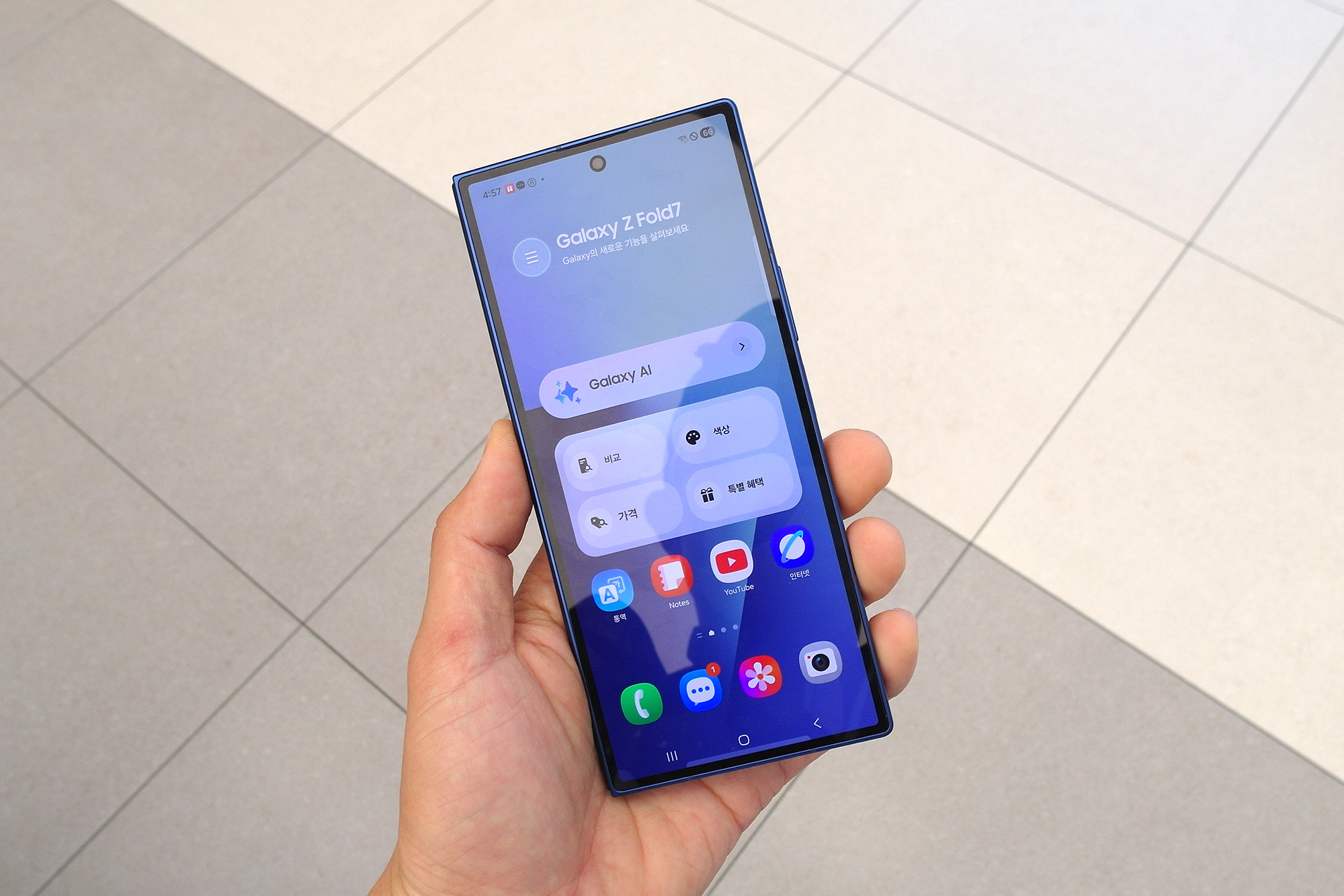 갤럭시Z 폴드7의 색상은 블루 쉐도우, 실버 쉐도우, 제트 블랙 3가지로 출시되었고 민트는 삼성닷컴과 삼성 강남 전용으로 출시되었습니다. 주력은 블루 컬러인 것 같은데요. 쨍한 느낌을 주는 편입니다. 실제로 갤럭시Z 폴드7의 색상은 다음 번 포스팅을 확인해 주세요.