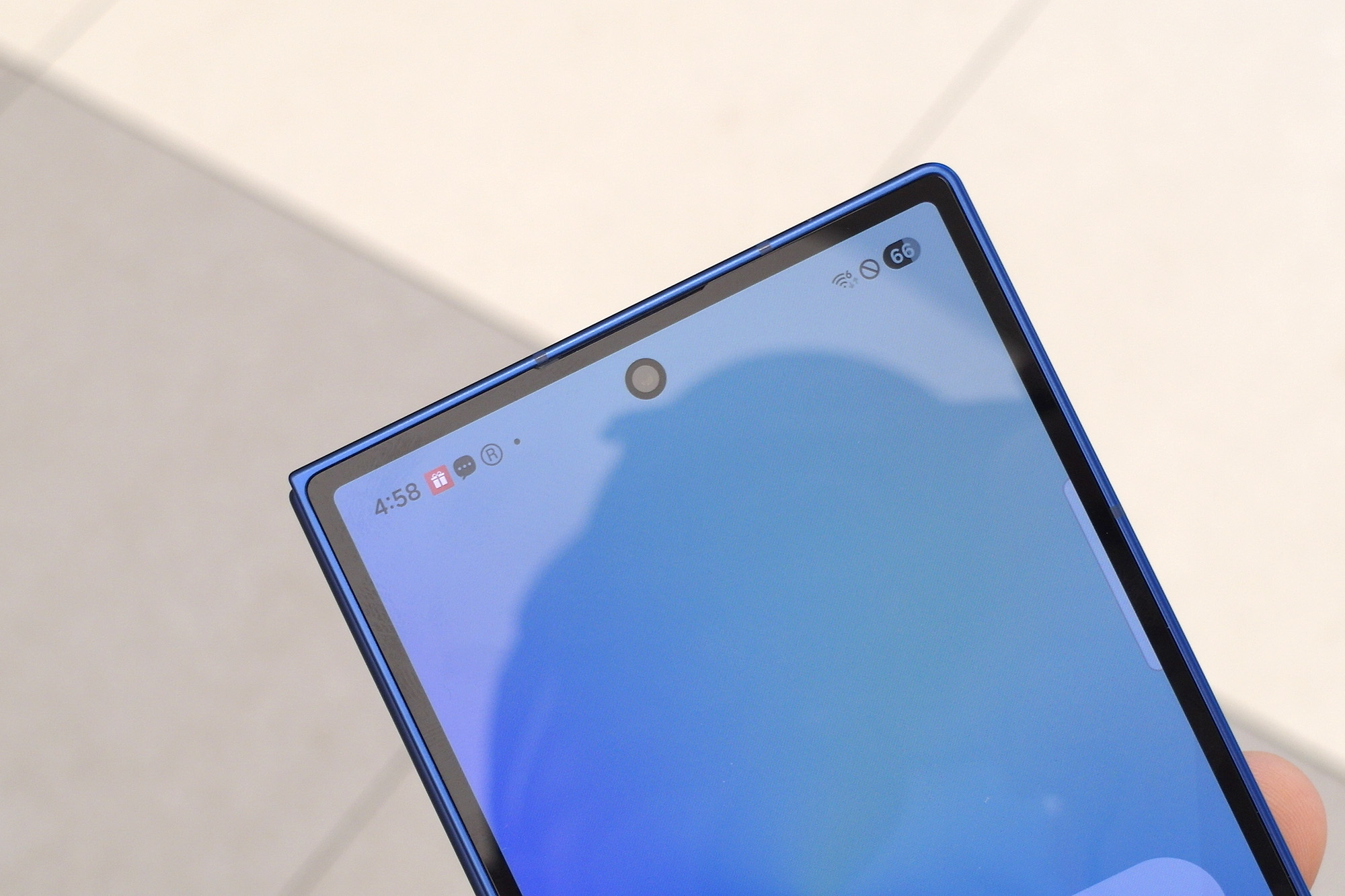 갤럭시Z 폴드7의 UDC가 제거되어서 펀치홀 카메라 부분이 그래도 노출되는 형태로 제작되었는데요. 약간은 아쉬운 부분이라고 할 수 있습니다. 그리고 전체적인 베젤의 두께도 크게 거슬리지 않는 편이었습니다.