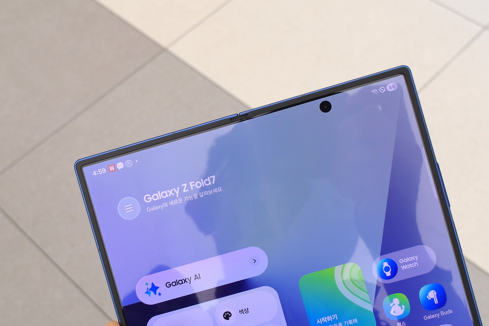 갤럭시Z 폴드7의 UDC가 제거되어서 펀치홀 카메라 부분이 그래도 노출되는 형태로 제작되었는데요. 약간은 아쉬운 부분이라고 할 수 있습니다. 그리고 전체적인 베젤의 두께도 크게 거슬리지 않는 편이었습니다.