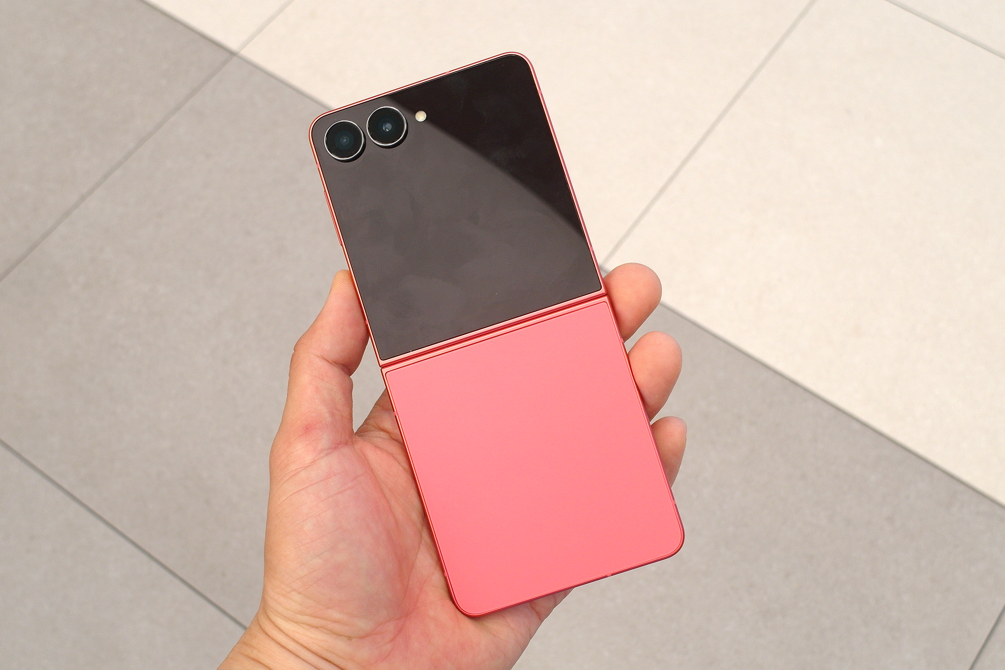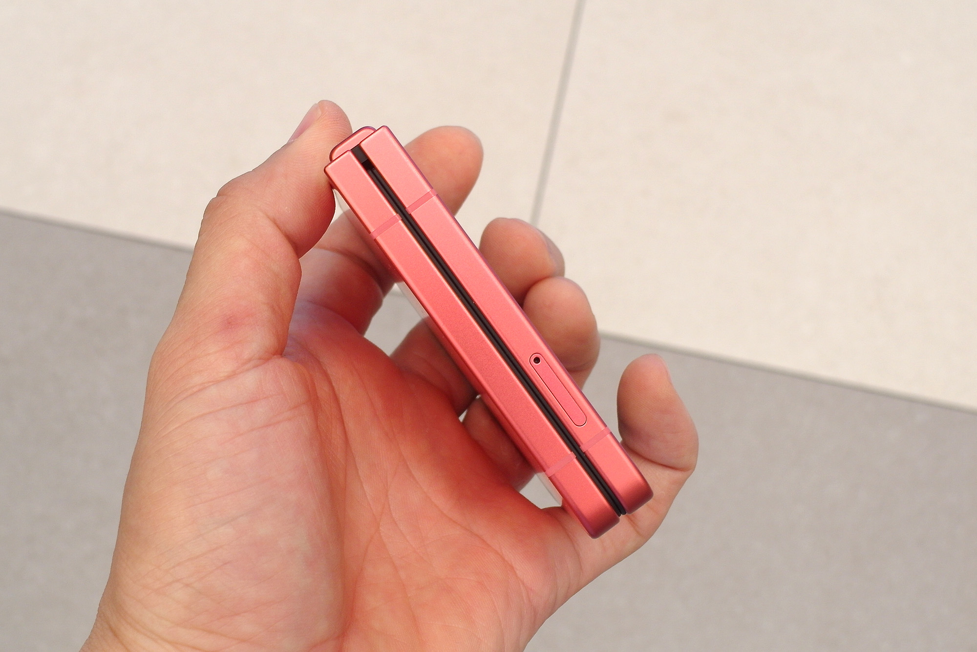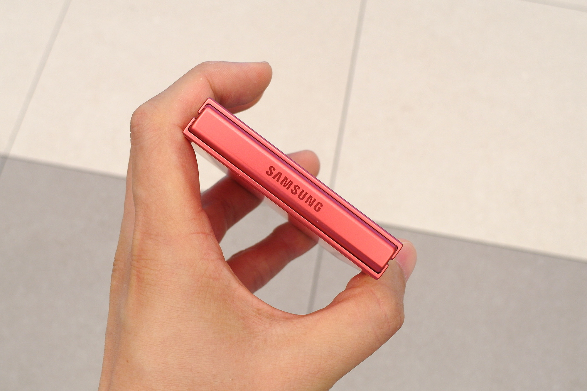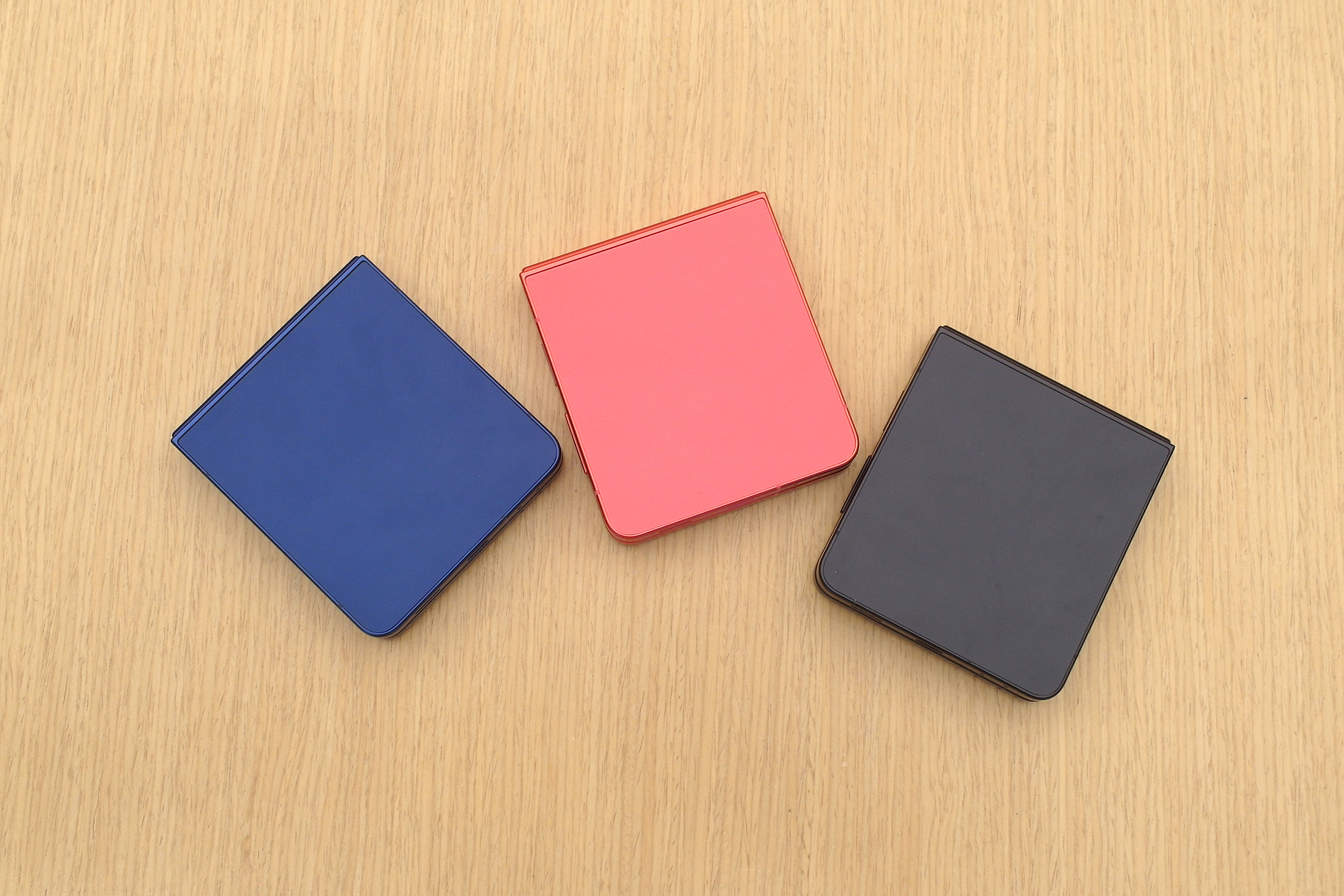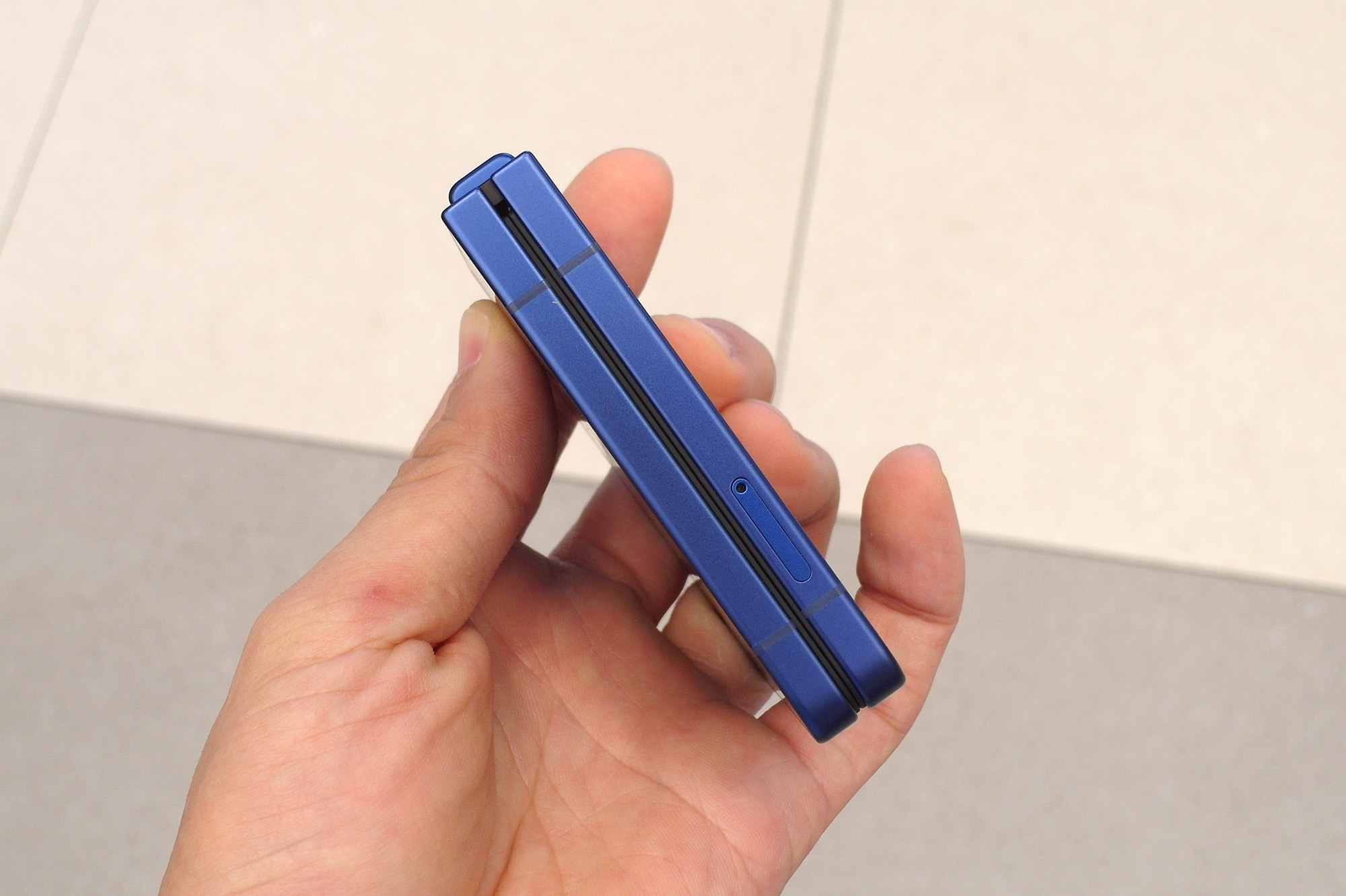 삼성 갤럭시Z 플립7의 뒷면을 보면 블루 쉐도우, 코랄레드, 제트블랙 3가지 색상의 마감을 확인할 수 있는데요. 매트한 느낌으로 표면처리가 되어 있는 것을 확인할 수 있습니다. 색상의 개인적인 순위는 블랙 > 블루 > 레드였는데요. 전체적으로 마음에 와닿는 컬러는 없었습니다.