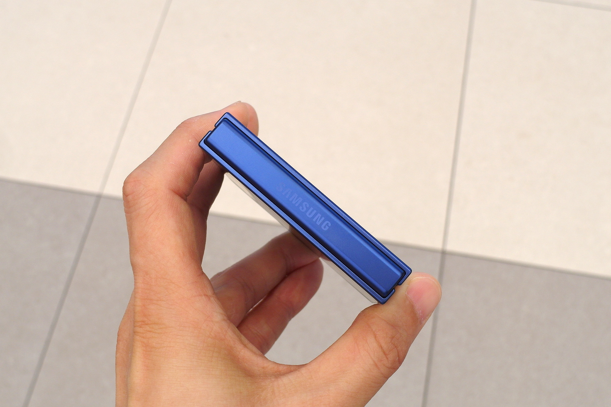 삼성 갤럭시Z 플립7의 뒷면을 보면 블루 쉐도우, 코랄레드, 제트블랙 3가지 색상의 마감을 확인할 수 있는데요. 매트한 느낌으로 표면처리가 되어 있는 것을 확인할 수 있습니다. 색상의 개인적인 순위는 블랙 > 블루 > 레드였는데요. 전체적으로 마음에 와닿는 컬러는 없었습니다.