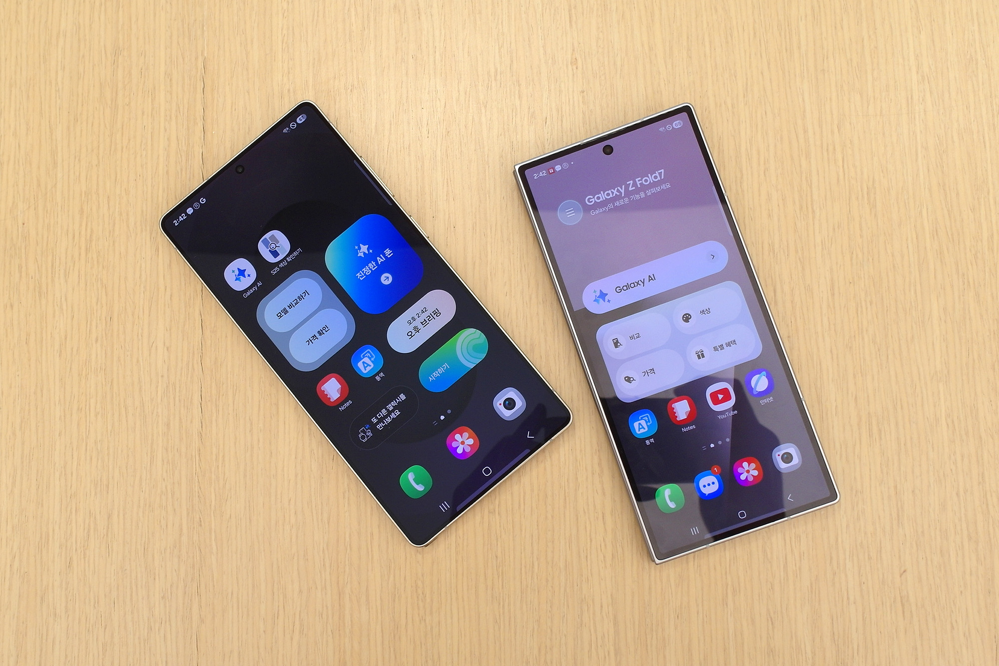 갤럭시Z 폴드7와 S25 울트라의 두께를 비교해 보면 접었을 때 각각 8.9mm와 8.2mm입니다. 수치상 폴드7이 더 두꺼울 것 같지만 실제로 잡아보면 비슷비슷하다는 느낌을 받았습니다. 그리고 펼쳤을 때는 비교할 수 없이 슬림한 편입니다.