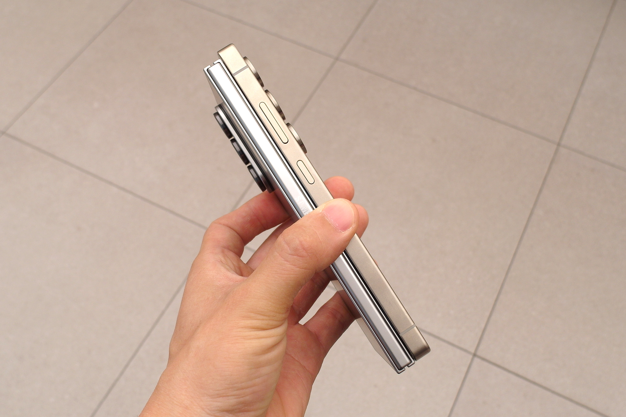 저는 오랫동안 삼성전자의 스마트폰을 지켜보고 있는데요. 테두리 엣지 부분의 각도가 직각에 가까울수록 프리미엄 스마트폰이라고 판단하고 있습니다. 그런 의미에서 폴드7의 모서리 각도가 상당히 가파르다는 것을 확인할 수 있습니다.