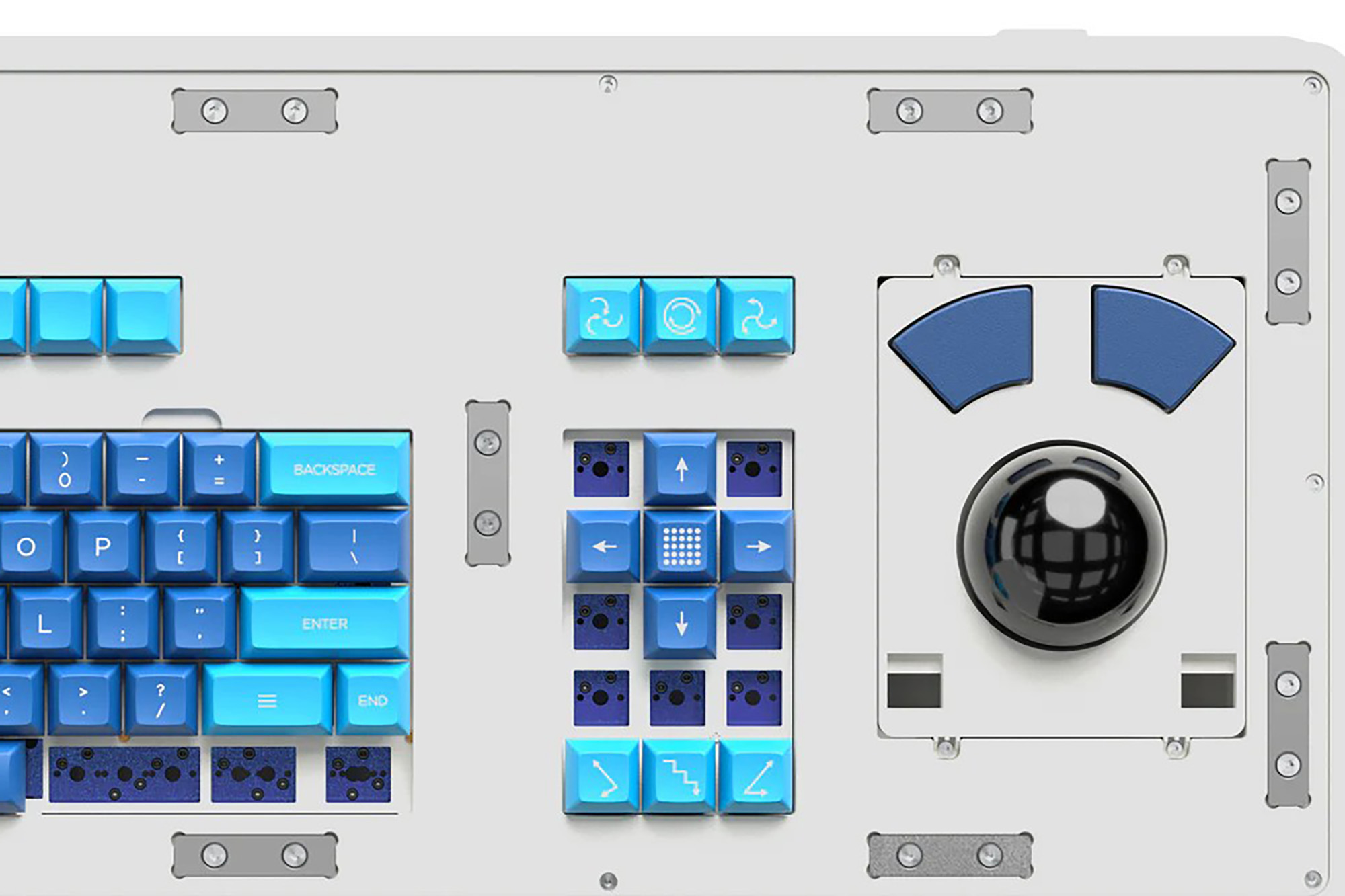 ATOMIC MDR Dasher 키보드는 최근에 출시되고 있는 커스텀 키보드처럼 알루미늄 바디로 제작되었고 CNC로 가공이 이루어졌다고 합니다. 그래서 무게가 약 7kg에 달할 정도로 묵직한 편이고 안정적인 타건감을 제공합니다. 그 외에도 오른쪽에 50mm 트랙볼이 내장되어 있다는 점도 주목해 보아야할 부분이라고 생각되었습니다.