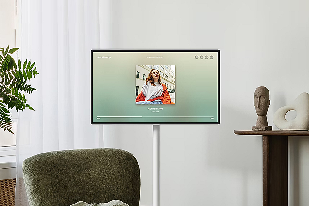 무빙스타일 엣지는 웜 화이트 색상으로 제작되어서 주변 인테리어와 매칭이 좋을 것으로 예상되고 기본으로 제공되는 32인치 디스플레이는 4개 베젤의 두께가 같은 이븐 베젤이 적용되어서 조금 더 보기 좋을 것으로 예상합니다. 그런데 LG전자의 제품처럼 스탠드 자체에 배터리가 내장된 것은 아니어서 사용 환경이 조금 제한적이라는 점은 아쉬운 부분이라고 생각되었습니다.