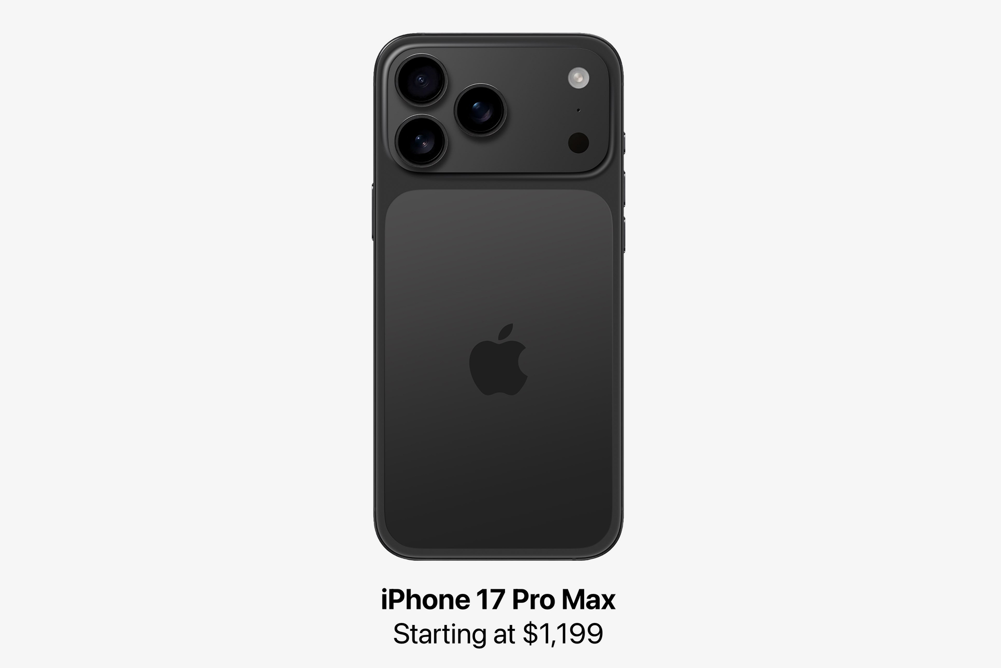 아이폰 17 프로 맥스 역시도 프로와 같은 디자인을 채택하고 있는데요. 재미있는 부분은 유리로 마감된 부분의 애플 로고가 바디 전체를 기준으로 하는 것이 아니라 유리의 중심에 배치되어 있다는 점입니다. 그리고 시작 가격은 $1,199인데요. 한국에서는 190만원 정도가 될 것으로 예상합니다.