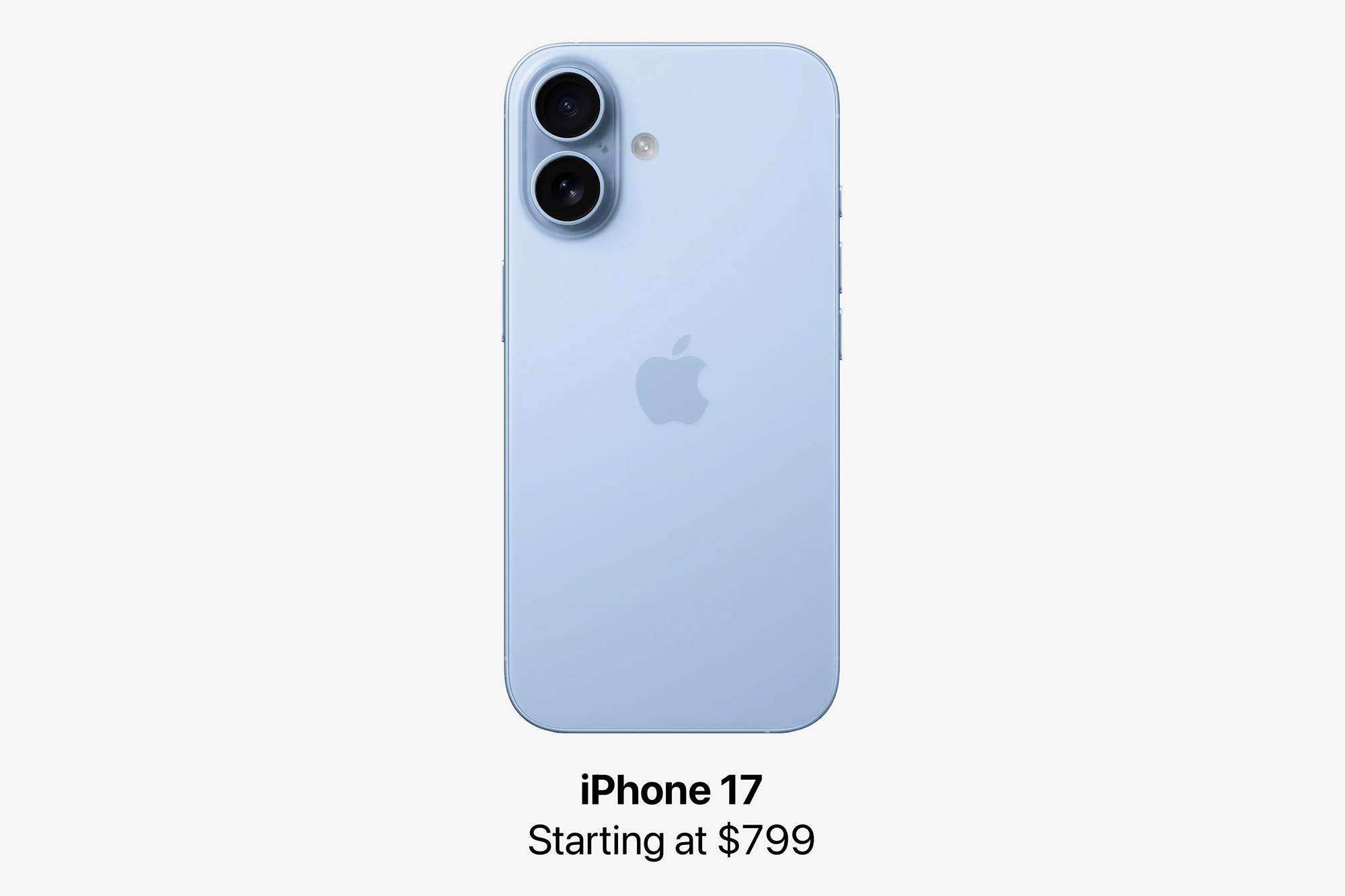 가장 기본 모델인 아이폰 17은 세로 형태의 듀얼 카메라가 탑재되었는데요. 시작 가격은 $799으로 책정되었습니다. 작년과 같은 환율이 적용된다면 한국에서는 125만원에 출시될 것으로 예상합니다.