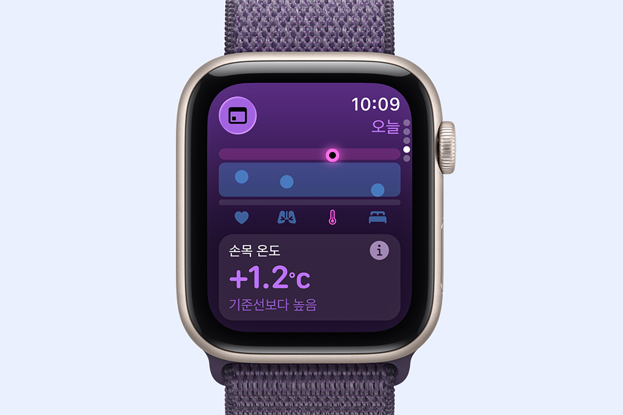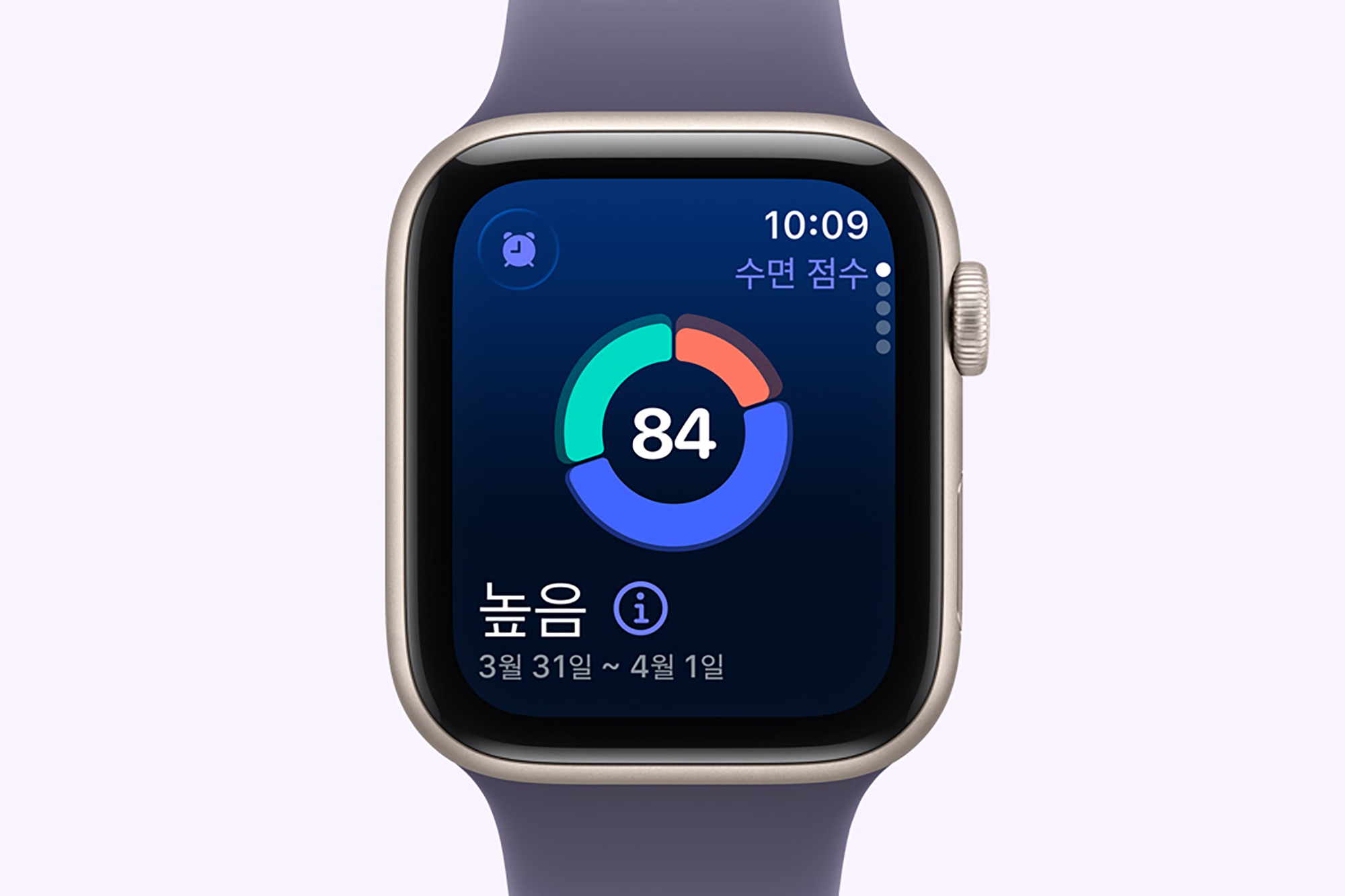 애플워치 SE 3세대에는 상시표시형 Retina 디스플레이가 탑재되었습니다. AOD라고 불리는 기능으로 항상 화면을 켜놓을 수 있기 때문에 빠르게 시간이나 각종 정보를 확인할 수 있다는 장점이 있습니다.