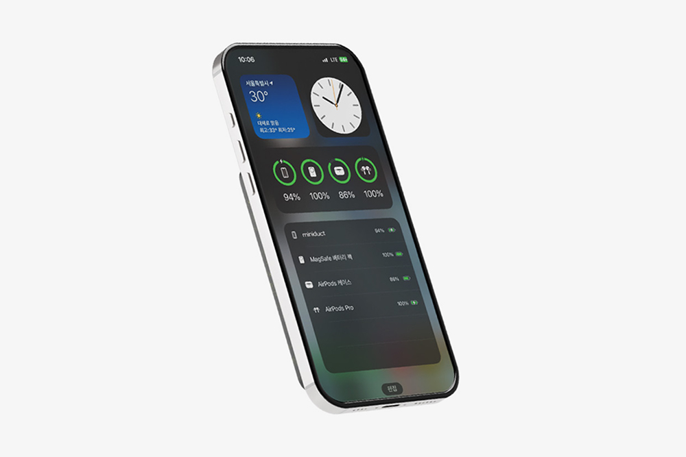 미니덕트 성경김 맥세이프 보조배터리는 5V/3A, 9V/2A 입력이 가능하고 유선 출력은 5V/3A, 9V/2.22A, 12V/1.5A 무선 출력은 5W, 7.5W, 10W입니다. 평범함 스펙의 제품이라는 것을 확인할 수 있습니다. 그리고 아이폰 배터리 위젯에서 잔량 확인도 가능합니다.