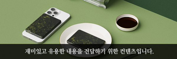 매년 10월 25일은 독도의 날이라고 하는데요. 성경김을 판매하고 있는 성경식품과 배터리 제작 업체인 미니덕트와의 콜라보레이션을 통해서 먹는 김 디자인의 맥세이프 보조배터리를 발표했습니다. 그럼 이번 포스팅에서 어떤 특징을 가졌는지 자세하게 확인해 보도록 하겠습니다. 참고로 모델명은 GIM100으로 위트가 있는 편입니다.