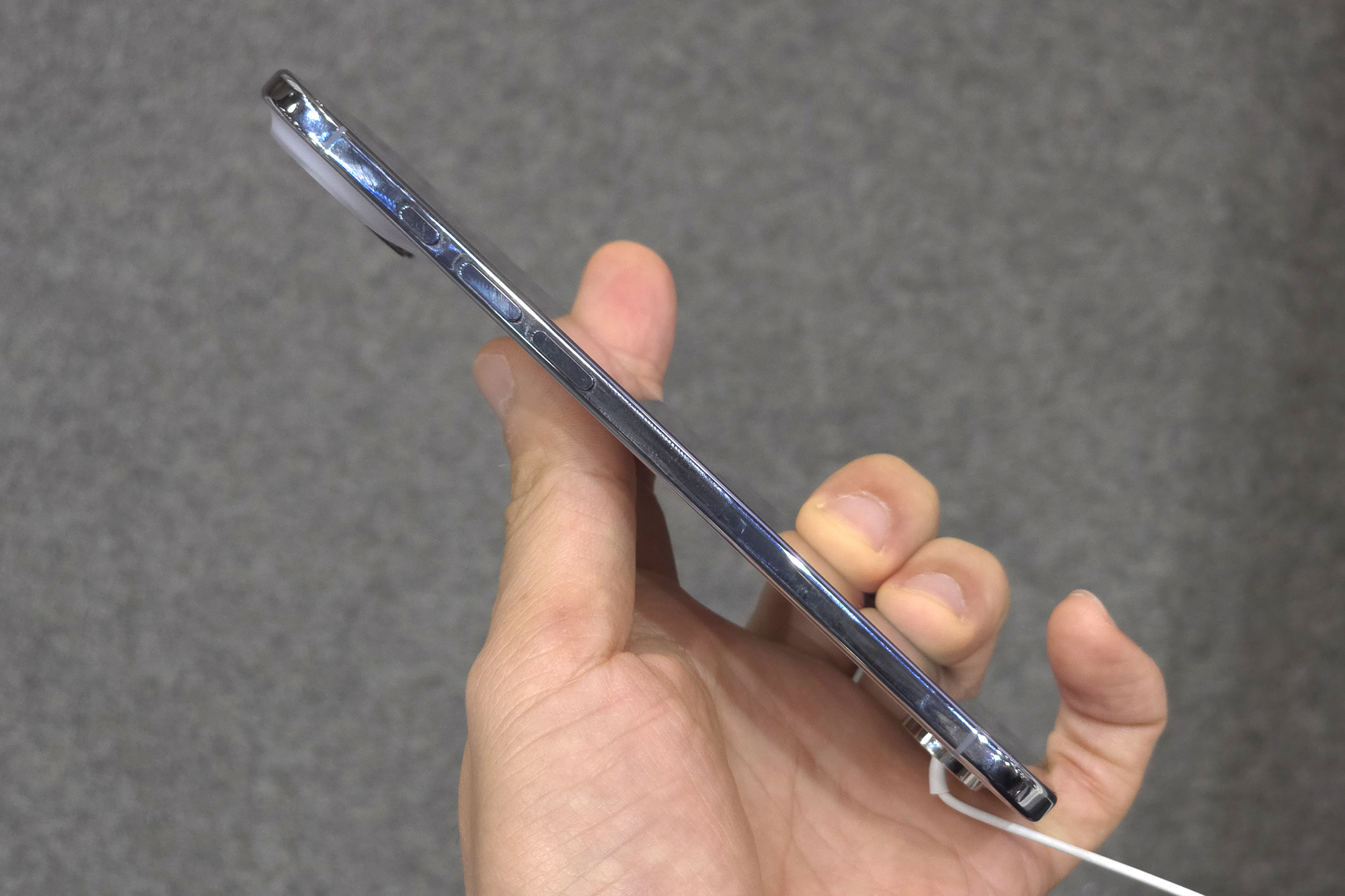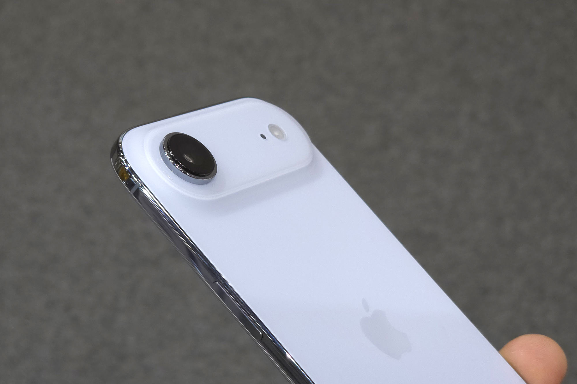 아이폰 에어는 5.64mm의 두께와 165g의 무게를 가지고 있습니다. 그래서 내구성이 약할 것이라는 전망이 있었는데요. 프레임이 티타늄으로 제작되어서 JerryRigEverything의 테스트도 버틸 만큼 내구성이 강한 편입니다. 그리고 옆면은 유광으로 마무리되었는데요. 저는 지문이 많이 묻어서 좋아하지 않습니다. 그리고 옆쪽에 카메라 컨트롤이 배치되어 있고 아래쪽에 있는 것은 스피커가 아니라 마이크입니다.