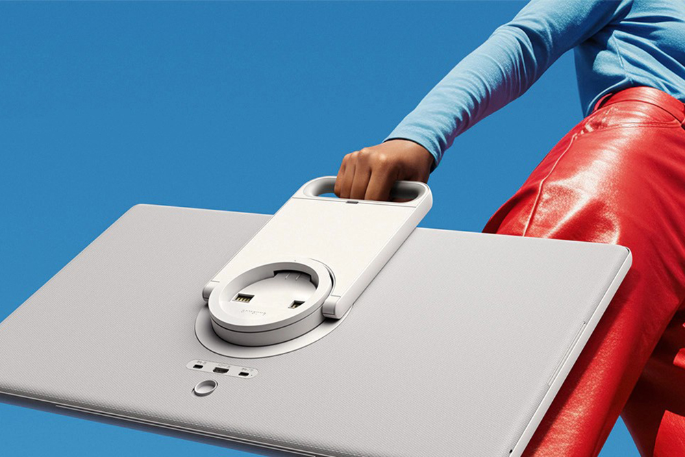 삼성 더 무빙스타일은 LG 스탠바이미 2처럼 분리형 스크린을 제공하는데요. 27인치 크기의 화면을 간단하게 분리해서 자신이 원하는 장소에서 콘텐츠를 재생할 수 있습니다. 참고로 킥스탠드가 내장되어 있어서 각도 조절이 가능하고 최대 3식단 정도 사용할 수 있는 배터리를 내장하고 있다고 합니다.