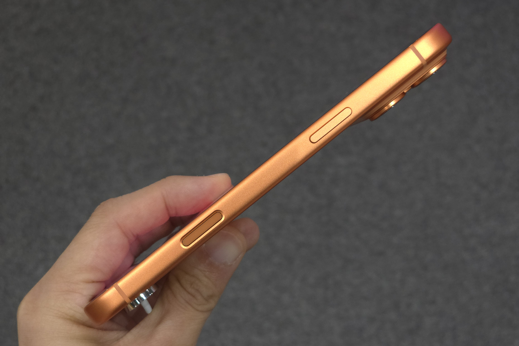 아이폰 17 프로 맥스의 두께는 8.75mm이고 무게는 231g입니다. 그리고 옆면을 살펴보면 카메라 컨트롤과 동작 버튼 등이 배치된 것을 확인할 수 있습니다. 그리고 모서리 부분은 약간 둥글게 처리되어 있는데요. 그립감에는 좋을 수 있지만 저는 각진 디자인을 더 선호합니다.